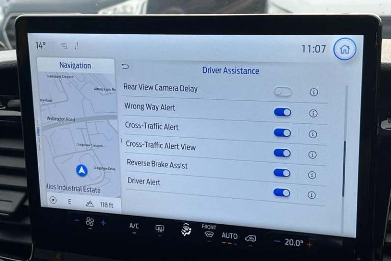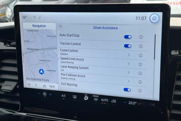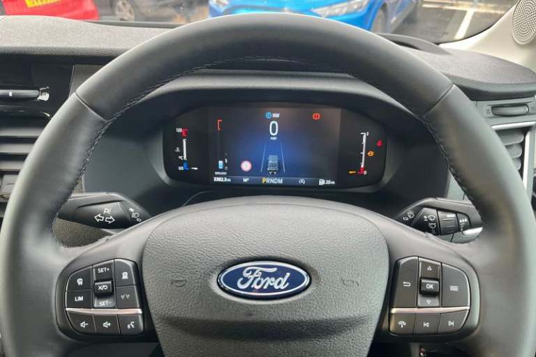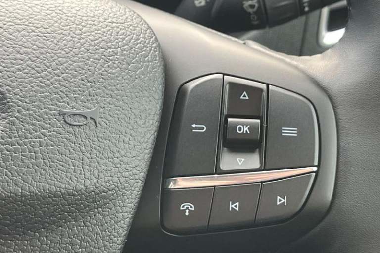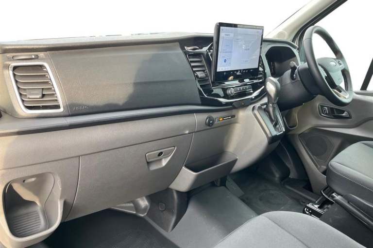 REAR VIEW CAMERA shows whats behind you on a screen in front of you on the dashboard - the system activates when you select reverse gear and using virtual guidelines can help you park, LANE KEEPING AID uses forward looking cameras to detect if youre unintentionally drifting out of a lane - Lane keeping alert then warns you and if you dont respond the vehicle provides steering torque assistance to help guide you safely back into the right lane, FRONT AND REAR PARKING SENSORS are designed to help you park more confidently helping you judge the distance between your vehicle and obstacles both in front and behind you, CRUISE CONTROL provides extra comfort on longer journeys allowing you take your foot off the acceleration whilst just focusing on steering the vehicle, 12 touch screen with new SYNC 4 system, BLUETOOTH HANDS FREE WITH VOICE CONTROL allows you to operate both your mobile phone and Ford audio system - controlling several functions using a set list of simple voice commands, Automatic air conditioner with 12 inch multi function display, Remote central locking, Front fog lights, Heavy duty battery, PAS, Leather steering wheel, Trip computer, Body coloured front bumper, Driver's armrest, 16 steel wheels, Roof mounted aerial, Tool kit, Premium feel steering wheel, Rake and reach steering adjustment, Overhead console, Selectable drive mode, Flip open 4th row side windows, Driver Assistance pack 6P - Transit minibus, Electronic dynamic cornering control, Complete molded headliner,