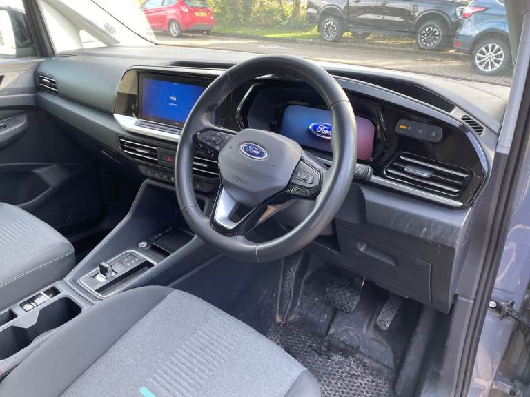 .Really desirable for three very big reasons.. 1. This is the Active model with its top of the range features adding comfort, practicallity and a stylish look. 2. FlexCab! 5 seats when you need them, and transform into a capacious L2 panel van in seconds with ease. 3. 150PS PHEV. Plug in for zero emmission range or petrol power for longer journeys. Cheap to run, low emmissions, high performance an no range anxiety..10'' touchscreen infotainment display with volume and temperature slider controls, Android Auto and Apple Carplay with USB or wireless connectivity, Brake wear indicator, Enhanced digital cluster with navigation integration, Fordpass connect modem including eCall, Front camera system, PAS, Tyre pressure monitoring system with cluster display of tyre pressures, Wireless charging pad, 4 speakers, DAB radio bluetooth, voice control and navigation, Two USB (45W type C) front power/Data points, Adaptive front lighting system, Auto Headlamps - Follow Me Home, Automatic headlamps on/off, Automatic windshield wiper, Black painted exterior mirror caps, Body colour door handles with black door rail, Body coloured exterior tailgate handle, Body coloured rear bumper, Dark tinted glass, Day and night inside mirror, Dual power heated mirrors, Dual side load doors, Front bumper with silver skid plate, Front fog lights, High mounted stop lamp, Honeycomb grille, LED headlamps and day time running lamps with automatic headlamp levelling and auto high lamp headlamp, LED rear lights, LED tail lamps, Less chrome fog lamp surrounds, Misfuel Inhibitor, Power folding door mirrors, Power front windows - One touch up-down, Quickclear electric windshield defroster, Rear bumper silver skid plate, Silver painted roof rails, Unglazed rear cargo door, Unpainted black wheel arch mouldings, Weather protection seals, 12V socket in cabin, 2 way front headrestraints, 2nd and 3rd row LED reading lamps, 4 Wheel disc brakes, A/C Refrigerant - HF01234YF, Cargo area hardboard trim, Centre console with open stowage, Chrome air register, Driver and passenger sunvisor with mirror, Driver seat rotary recliner, Electronic dual zone automatic air conditioning, Fabric upholstery, First row LED light with map lights, Flexible bulkhead with window, Foot pedal, Load floor covering, Luggage compartment trim, Overhead storage compartment, Pollen filter without carbon filter, Reach and rake adjustable steering column, Recirculation heater, Rubber cab floor cover, Sensico gear shift knob, Sensico