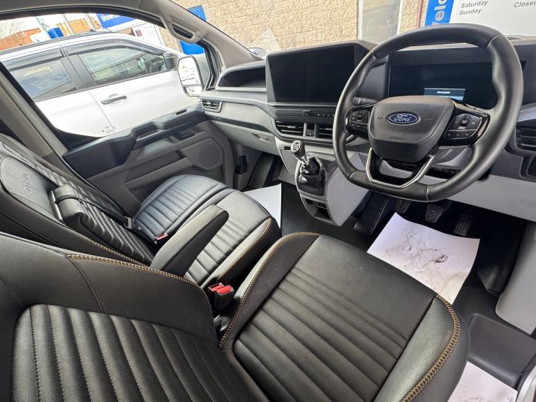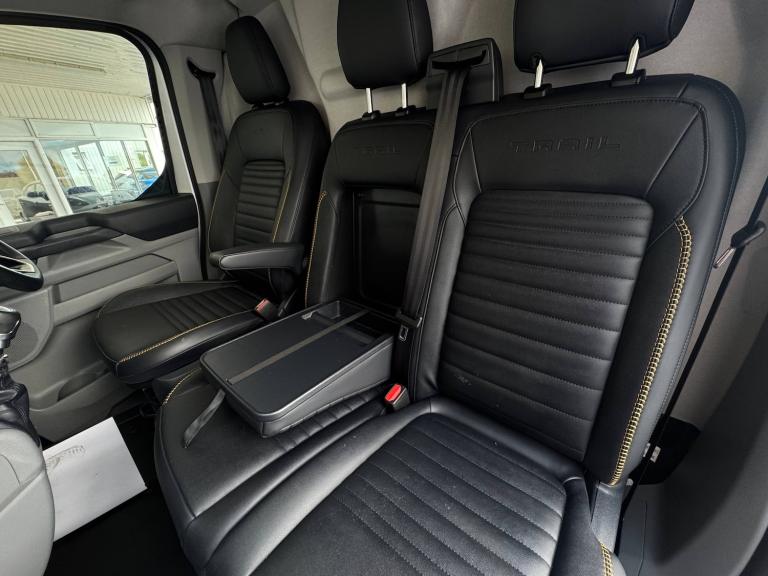 Passenger airbag, 5G embedded modem, AECS NO SMS/Roll Detect 2G, PAS, Tyre pressure monitor, Automatic headlights, Automatic windscreen wipers, Daytime running lights, Dual heated auto fold power exterior mirror, Electric front windows with one touch facility for driver and front passenger, Fixed DSS LED headlamps with auto high headlamp, Front mud flaps, Front splash guards, Gloss black door mirrors, Kerbside side load doors, Low roof line, Molded load floor liner, Part body colour front bumper, Quickclear front window defroster, Rear cargo hinged door, Rear splash guards, Self coloured rear bumpers, Solid paint, Tinted glass, Trailer sway control, 6 Load compartment tie down loops, Automatic air conditioning, Courtesy light, Full height polypro interior trim panels, Full metal bulkhead, Interior grab handle with driver's sunglasses holder, LED lights, Locking glove box lid, Sensico gearshift knob, Sensico steering wheel, Super bright load compartment lights, Comfort dual passenger seat pack - Transit custom Trail Van, Driver assistance pack 2 - Transit custom, 2 remote keys, Alcohol Interlock wiring preparation pack, Keyless start, Locking wheel lug nut, Power door dead locks, Standard unlocking, Thatcham category 1 alarm, 20L AdBlue tank, 55 litre fuel tank, ABS, Diesel particulate filter, ESP, Hill launch assist, Limited Slip front axle - mLSD, Traction control, SYNC 4 - Android Auto/Apple Car Play,advance speech recognition,over the air update capability, Full wheelcovers