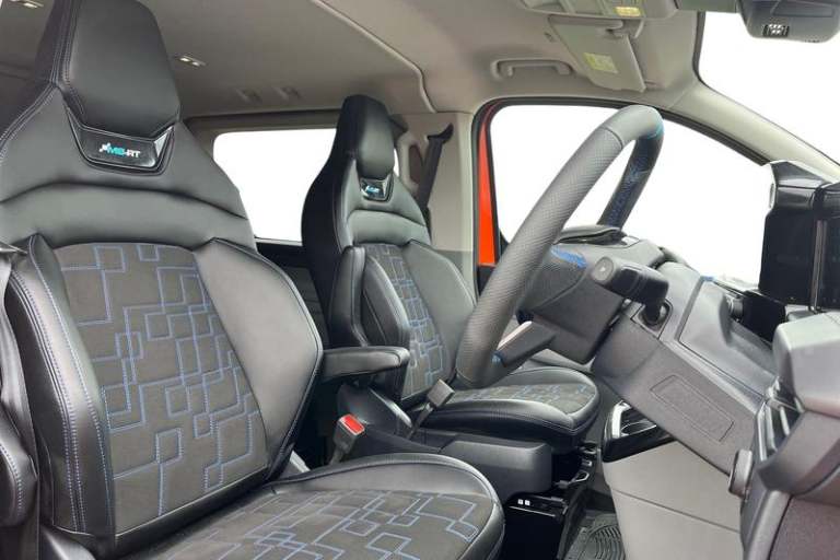 13in Touchscreen, 19in Alloy Wheels - MS-RT, 2 Remote Keys, 5G Embedded Modem, ABS - Anti-lock Braking System, AECS NO SMS - Roll Detect 2G, Aggressive and Aerodynamic Front Bumper - Body Colour, Alcohol Interlock, Ambient Interior Lighting, Automatic Windshield Wiper, Brake Callipers Painted in MS-RT Blue, Cab as Office, Carpet Floor in First Row and Rubber in Second Row, Courtesy Light, Daytime Running Lamps, Door Mirrors - Gloss Black Caps, Doors - Dual Side Load, Drivers Airbag, Dual Power Mirrors - Auto-Power Fold and Heated, Dual Zone Automatic Air Conditioning, ESC - Electronic Stability Programme, Electric Windows - Power Front with Driver-Passenger One-Touch, Fixed 2nd Row Windows, Fixed DSS LED Headlamps with Auto High Headlamps, Front Windshield Defroster - Quick Clear, HLA - Hill Launch Assist, Half Height Polypro Interior Trim Panels, Hinged Rear Cargo Door, Hood Accent Stripes, Keyless Entry, Keyless Start, LED Taillamps, Large Console, Load Compartment - Tie Down Loops x4, Lockable Glovebox, Locking Wheel Nuts, Lowered Side Skirts, MS-RT Premium Non Animal Eco Leather Single Passenger Seat - Seat Pack 25, Motorsport Inspired Rear Spoiler, Moulded Load Floor Liner, PHEV Petrol Tank - 63L, Passenger Airbag, Polymer Moulded Bulkhead, Power Door Deadlocks - Double Locking, Privacy Glass, Reversing Camera Pack - DAT Pack 2, SYNC 4, Single Phase Charge Cord, Soft Close Assist - Assists in the Final Close Action of the Side Load Door, Sports Rear Bumper with Integrated