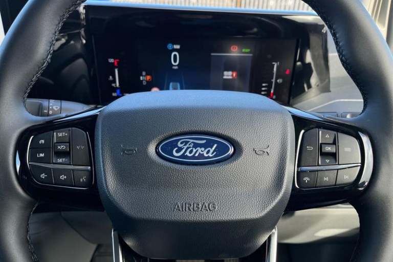 Anti-lock brake system, PAS, Front mud flaps, Electronic Stability Programme, Body coloured front bumper, Courtesy light, Traction control, Body coloured door mirrors, Automatic headlights, Thatcham category 1 alarm, Tyre pressure monitor, Full wheelcovers, Body coloured rear bumpers, Automatic windscreen wipers, Daytime running lights, Electric front windows with one touch facility for driver and front passenger, Low roof line, Keyless entry and start, Trailer sway control, 63 litre fuel tank, 2 remote keys, Hill launch assist, Locking wheel lug nut, Rear splash guards, Rear cargo hinged door, 6 Load compartment tie down loops, Locking glove box lid, SYNC 4 - Android Auto/Apple Car Play, advance speech recognition, over the air update capability, 13 Touchscreen, 5G embedded modem, Quickclear front window defroster, Front splash guards, Interior grab handle with driver's sunglasses holder, Sensico gearshift knob, LED lights, AECS NO SMS/Roll Detect 2G, Alcohol Interlock wiring preparation pack