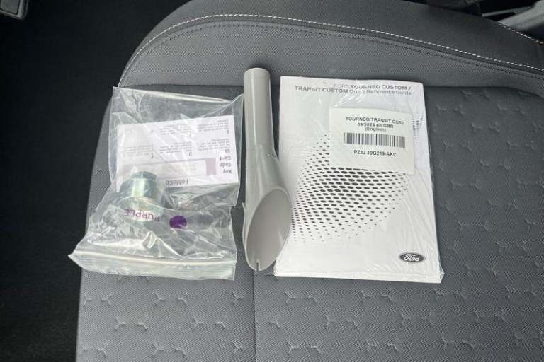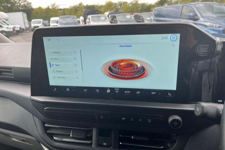 SYNC 4 - Android Auto/Apple Car Play, Satellite Navigation System, Touchscreen Head Unit , DAB Radio, Heated Front Seats, Front + Rear Parking Sensors , Reversing Camera , Cruise Control , Air Conditioning, Bluetooth, Voice Control , Automatic Headlights, Heated Front Windscreen, Push Button Start, USB Port, Daytime Running Lights, Anti-lock brake system, Passenger airbag, PAS, Front mud flaps, Electronic Stability Programme, Body coloured front bumper, Courtesy light, Traction control, Body coloured door mirrors, Thatcham category 1 alarm, Tyre pressure monitor, Full wheelcovers, Body coloured rear bumpers, Rear reading light, Automatic windscreen wipers, Diesel particulate filter, Electric front windows with one touch facility for driver and front passenger, Low roof line, Keyless entry and start, Trailer sway control, 20L AdBlue tank, 2 remote keys, Hill launch assist, Molded load floor liner, 4 Load compartment tie down loops, Locking wheel lug nut, Rear splash guards, Rear cargo hinged door, Locking glove box lid, advance speech recognition, over the air update capability, 13 Touchscreen, 5G embedded modem, Quickclear front window defroster, Front splash guards, Interior grab handle with driver's sunglasses holder, Sensico gearshift knob, LED lights, Super bright load compartment lights, AECS NO SMS/Roll Detect 2G, DCiV Moulded polymer bulkhead, Rear USB charge port, 3 Seat Rear seats with under seat stowage, Alcohol Interlock wiring preparation pack, Carpet floor in first