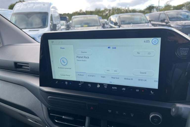 SYNC 4 - Android Auto/Apple Car Play, Touchscreen Head Unit , DAB Radio, Front + Rear Parking Sensors , Reversing Camera , Heated Front Seats, Air Conditioning, Bluetooth, Voice Control , Automatic Headlights, Cruise Control , Driving Modes , Push Button Start, USB Port, Eco Mode , Heated Front Windscreen, Daytime Running Lights, Anti-lock brake system, PAS, Front mud flaps, Electronic Stability Programme, Body coloured front bumper, Courtesy light, Traction control, Body coloured door mirrors, Thatcham category 1 alarm, Tyre pressure monitor, Full wheelcovers, Body coloured rear bumpers, Automatic windscreen wipers, Diesel particulate filter, Electric front windows with one touch facility for driver and front passenger, Low roof line, 8 Load compartment tie down loops, Keyless entry and start, Trailer sway control, 20L AdBlue tank, 2 remote keys, Hill launch assist, Locking wheel lug nut, Rear splash guards, Rear cargo hinged door, Locking glove box lid, advance speech recognition, over the air update capability, 13 Touchscreen, 5G embedded modem, Quickclear front window defroster, Front splash guards, Interior grab handle with driver's sunglasses holder, Sensico gearshift knob, LED lights, AECS NO SMS/Roll Detect 2G, Alcohol Interlock wiring preparation pack