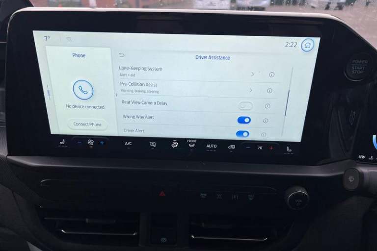 REAR VIEW CAMERA shows whats behind you on a screen in front of you on the dashboard - the system activates when you select reverse gear and using virtual guidelines can help you park, HILL START ASSIST temporarily stops you rolling backwards or forwards when making a hill start - maintaining pressure to the braking system for an extra 25 seconds giving you more time and control as you move your foot from the brake to the accelerator, FRONT AND REAR PARKING SENSORS are designed to help you park more confidently helping you judge the distance between your vehicle and obstacles both in front and behind you, CRUISE CONTROL provides extra comfort on longer journeys allowing you take your foot off the acceleration whilst just focusing on steering the vehicle, QUICKCLEAR HEATED WINDSCREEN uses ultra thin filaments that superheat to de-ice and de-mist your windscreen as well as help de-freeze the wipers and works in seconds, BLUETOOTH HANDS FREE WITH VOICE CONTROL allows you to operate both your mobile phone and Ford audio system - controlling several functions using a set list of simple voice commands, 5G CONNECTIVITY - Stay connected while out on the job with a 5G modem built-in for faster connectivity, SYNC 4 includes Android Auto - Apple Car Play with advance speech recognition and over the air update capability, HEATED FRONT SEATS Provide comfort in any weather, Electric front windows with one touch facility for driver and front passenger, Keyless entry and start, 13 Touchscreen,
