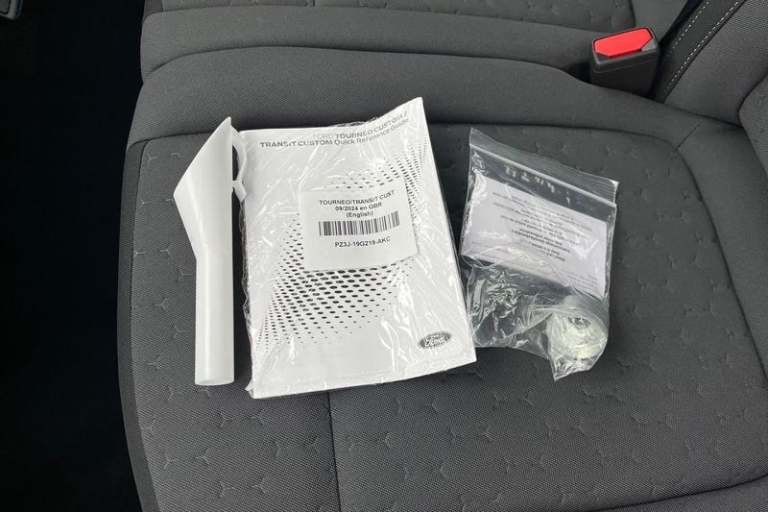 SYNC 4 - Android Auto/Apple Car Play, Touchscreen Head Unit , DAB Radio, Front + Rear Parking Sensors , Reversing Camera , Heated Front Seats, Cruise Control , Air Conditioning, Bluetooth, Voice Control , Automatic Headlights, Push Button Start, Stop Start System, USB Port, Heated Front Windscreen, Daytime Running Lights, Anti-lock brake system, Passenger airbag, PAS, Front mud flaps, Electronic Stability Programme, Body coloured front bumper, Courtesy light, Traction control, Body coloured door mirrors, Thatcham category 1 alarm, Tyre pressure monitor, Full wheelcovers, Body coloured rear bumpers, Rear reading light, Automatic windscreen wipers, Electric front windows with one touch facility for driver and front passenger, Low roof line, Keyless entry and start, Trailer sway control, 63 litre fuel tank, 2 remote keys, Hill launch assist, Molded load floor liner, Locking wheel lug nut, Rear splash guards, Rear cargo hinged door, 6 Load compartment tie down loops, Locking glove box lid, advance speech recognition, over the air update capability, 13 Touchscreen, 5G embedded modem, Quickclear front window defroster, Front splash guards, Interior grab handle with driver's sunglasses holder, Sensico gearshift knob, LED lights, Super bright load compartment lights, AECS NO SMS/Roll Detect 2G, DCiV Moulded polymer bulkhead, Rear USB charge port, 3 Seat Rear seats with under seat stowage, Alcohol Interlock wiring preparation pack, Carpet floor in first row and second row, Rubber in