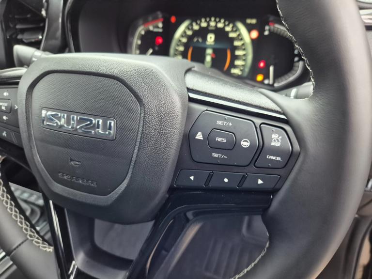 Isuzu D-Max 1.9 V-Cross Double Cab 4x4..4.2'' Multi function display, 4WD shift on the fly, 9'' Multifunction colour touchscreen, Blind spot monitor, Bluetooth connectivity, Cruise control, Door open warning light, eCall, Emergency lane keeping, Forward Collision warning, Front and rear parking sensors, Intelligent speed limiter, Lane departure warning and prevention system, Manual gearshift indicator, Multi collision brake, On/off button for lane support system mounted on steering wheel, One motion door unlock for driver's side, Rear cross traffic alert, Reversing camera, Speed sensitive power steering, Traffic sign recognition, 8 speakers, Apple Carplay/Android Auto, Audio and cruise controls mounted on steering wheel, CD player, Digital radio (DAB), Front USB connection, Rear USB connection, Auto dimming rear view mirror, Automatic headlight levelling, Automatic headlights, Automatic windscreen wipers with rain sensor, Bi-LED headlights, Body coloured front bumper, Body coloured rear bumper with integrated step, Folding heated and gun metal door mirrors with side indicator repeaters, Follow me home light, Front and rear power windows with driver side auto up/down function with pinch protection and timer, Gun metal door handles, Gun metal radiator grille, Gun metal side steps, Heated rear windscreen, High beam assist, Integrated fuel filler cap with AdBlue, LED Daytime running lights, LED front fog lights, LED rear lights, Rear fog lights, Rear radar chipping guard, Security etched glass, Tailgate damper, Trailer sway control, V-cross styling elements, 2 x Rear side ISOFIX child seat anchors with top tether anchors, 60/40 folding seat base, 8 way adjustable electric driver's seat, Carpet covered floor, Centre and floor console, Closed upper and open lower glove boxes, Closed upper driver dashboard storage compartment, Driver and passenger sun visors with illuminated vanity mirror, Driver's footrest, Dual zone climate control, Flat folding rear seats, Front centre armrest, Front cup holders in centre console and dash - driver and passenger sides, Front door pockets with bottle holder, Front seat back map pockets, Heated front seats, Height adjustable front headrests, Height adjustable rear headrest, Height and reach adjustable steering wheel, Leather steering wheel, Leather upholstery, Map lights, Power driver's seat lumbar support, Rear centre armrest with cup holders, Rear door pockets with bottle holder, Rear ventilation panel, Sunglasses holder and