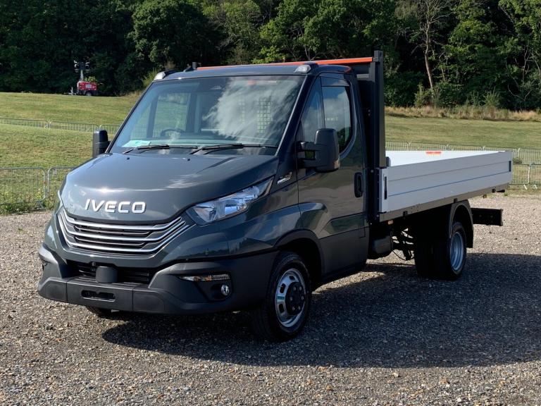 Brand new Iveco Daily 35C14A8 4.1m Dropside 2.3ltr 140bhp 8- Speed Hi- Matic Auto 3750 wheelbase 3500kgs GVW 7000kgs GTWComes with Comfort Plus pack including Auto climate control, adaptive cruise control, drivers suspended comfort seat, Iveco infotainment 10 inch media screen with Navigation, heated and electrically adjustable mirrors, fog lights, textile headrests, chrome front grillReversing camera with dynamic lines, reversing sensors, 95ltr fuel tank, window in rear of cab4.1m factory fitted alloy dropside body, cab guard and heavy duty rear springsComes with 3 year 100,000 mileage Iveco warranty including 1st service free. Low rate finance available subject to status Buy with confidence from the Iveco Daily experts, 36 month warranty, Bodywork condition - New, Black cloth interior condition - New, Tyre condition - New, 4x2, Grey