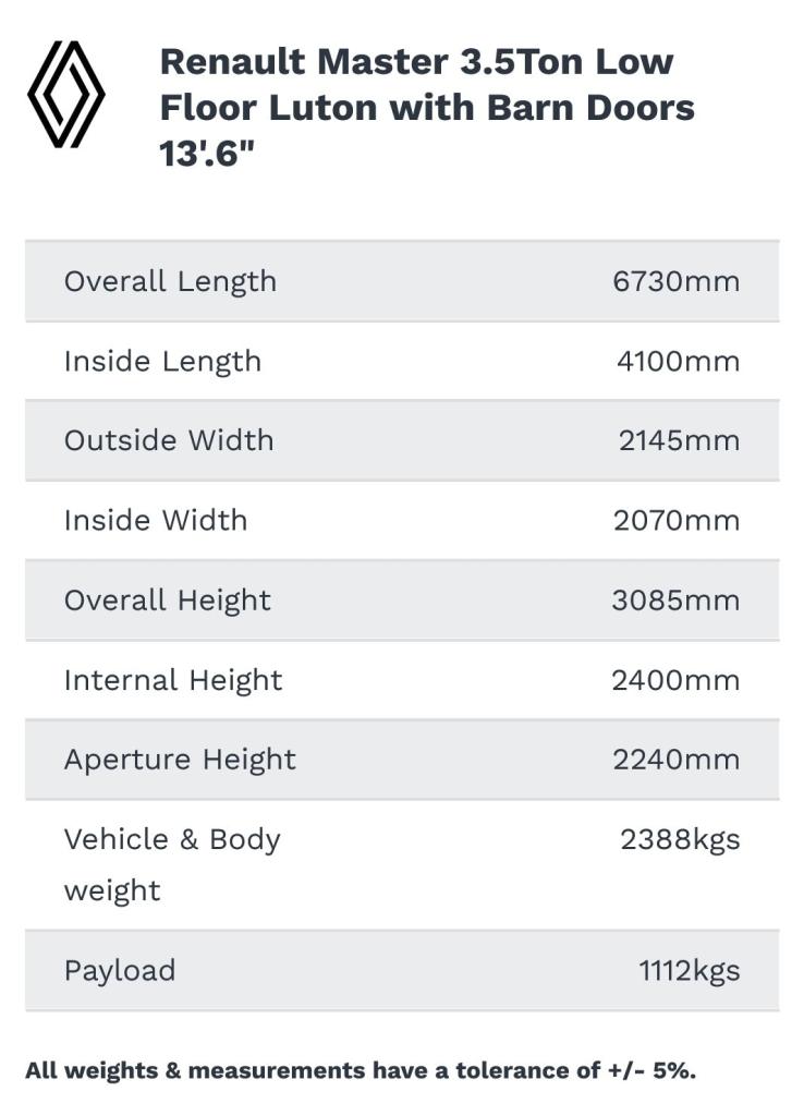 Posting for 3+ years2025 Renault Master LL35dCi 150 Advance 4.1 Meter Luton Low Loader Vans Pre Reg on 75 Plates Luto...
