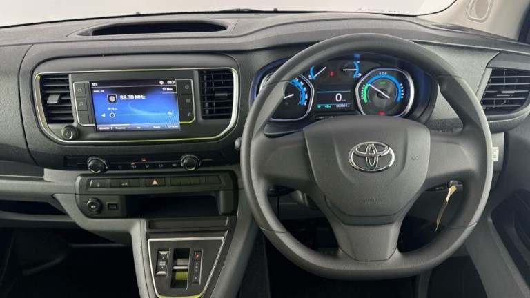 This 2025 Toyota ProAce Icon Medium Panel Van Auto MWB 6dr is a Toyota manufacturer approved electric vehicle, offering a blend of practicality and modern technology. With a 50 kWh battery, it provides a maximum range of 143 miles when new. This Icon derivative is equipped with the Pro Touch Multimedia System, featuring Android Auto and Apple CarPlay for seamless smartphone integration, alongside Bluetooth connectivity. For added convenience, it includes auto headlights and manual air conditioning.The ProAce Icon is designed to make your journeys smoother and more efficient. Charging is flexible, with a full charge at home taking approximately 7 hours and 30 minutes using a 7kW charger. For quicker top ups, it can reach 80% charge from empty in just 32 minutes at a public charging station. This model also comes with a 13 pin trailer connector, indicating its capability for towing. These features collectively enhance its appeal compared to other vehicles in its class.