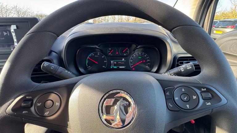 12V Electrical Accessory Socket, 7.4kW On-Board Charger, Automatic lighting control, Central Facia Display, Cruise control with speed limiter, Daytime Running Lights, Drive Mode Selector - Power-Normal-Eco, Driver Information Display, Headlights - Manual Beam Levelling, Lights On Audible Warning, Mode 3 Cable, Multi-function trip computer, Radio with 5in Mono Display, Rear Parking Distance Sensors, Rev Counter, Single Foot Driving Experience, Speed Sensitive Electrically Assisted Power Steering, Speedometer, USB Connection, Vauxhall Connect, Water Temperature Gauge with Warning Light, 16in Steel Wheels with Centre Caps, Black Door Mirrors, Electrically Adjustable-Heated Door Mirrors, Electrically Operated Windows with Safety Autoreverse and One-Touch Up-Down Facility, Emergency Tyre Inflation Kit, Glazed Tailgate with Heated Rear Windows with Wash-Wipe Facility, Rear Fog Light, Reversing Lights, Side Protection Mouldings, Solar Heat Absorbing Windscreen, Tinted Windows, ABS - Anti-lock Braking System, Airbags - Deactivation Switch For Front Passengers and Side Impact, CSC - Corner Stability Control, Deformation Zones Front and Rear, Drivers Airbag, EBA - Emergency Brake Assist, EBD - Electronic Brakeforce Distribution, ESP - Electronic Stability Programme, Electric parking brake, Electronically Protected Audio Equipment, Energy Absorbing Steering Column, Engine Deadlock Immobiliser, Engine Drag Torque Control, Hazard Warning Lights, Height Adjustable Front Seatbelts, Hill Start Assist, Magic Wash System, Reinforced Passenger Safety Cell, Remote Control Central Locking, Remote control ultrasonic security alarm system, Side Impact Protection Beams, TRC - Traction Control, VIN - Visible Vehicle Identification Number, Air Conditioning, Cab Heating with Six-Speed Fan, Dipping Rear-View Mirror, Drinks Holder - Two Facia Mounted, Driver Seat - 6 Way Adjustable, Drivers and Front Passengers Sunvisors, Four Adjustable Facia Vents, Full-Height Steel Bulkhead, Full-Width Overhead Storage Shelf with Ambient Lighting, Illuminated Controls, Large Open Storage Pocket Behind Infotainment Screen, Nearside Sliding Side Access Door, Nearside Sliding Side Access Door - Unglazed, Open Storage Compartment Below Glovebox, Rake and Reach Adjustable Steering, Side Window Demist Vents, Single Fixed Passenger Seat and Head Restraint, Six Fixed Floor-Mounted Load Restraint Lashing Eyes, Small Open Storage Compartment Behind Gear Lever, Steering Wheel - Three-Spoke Flat Bottomed
