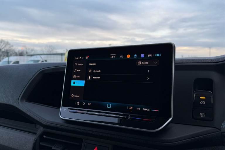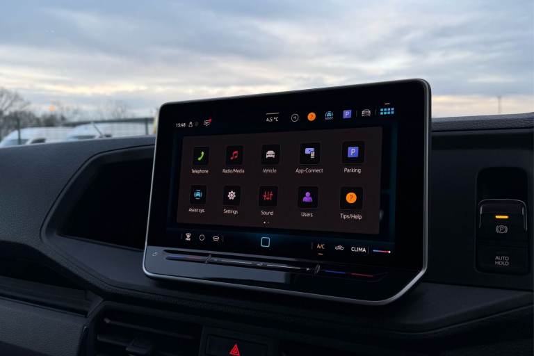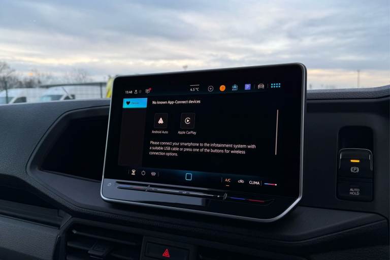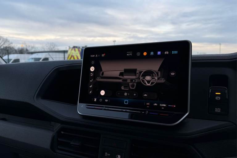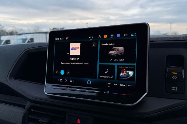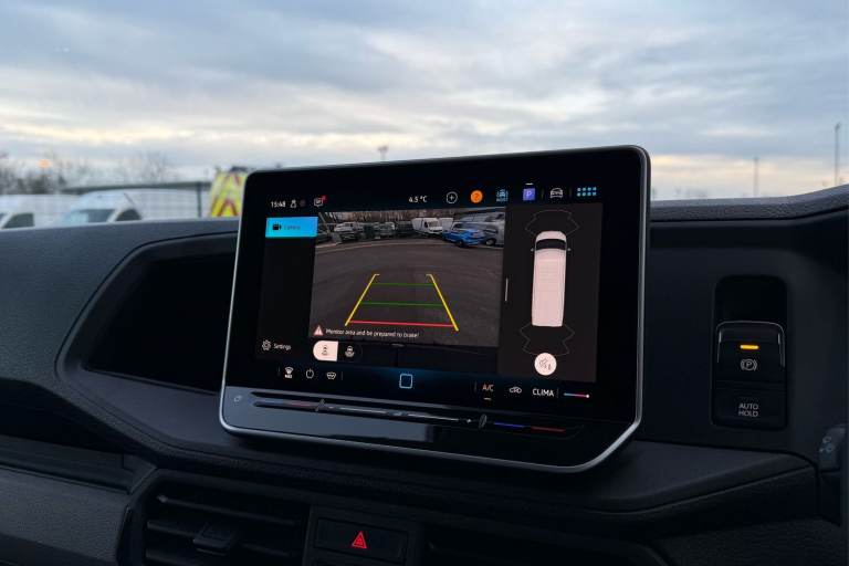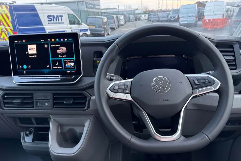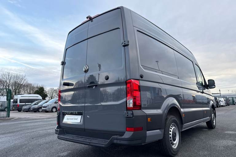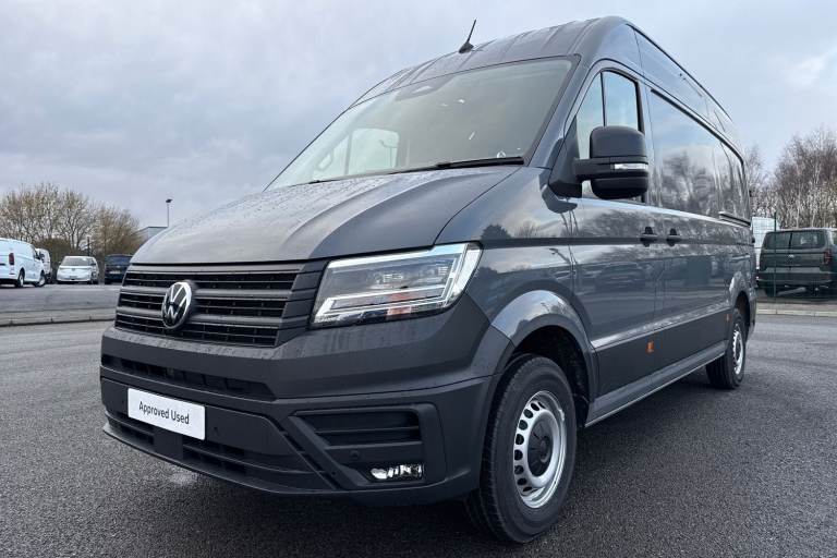 This Volkswagen Crafter CR35 Panel Van Commerce Plus MWB is finished in Pure Grey and is powered by a 2.0-litre TDI diesel engine paired with an 8-speed automatic transmission and front-wheel drive, delivering smooth performance and everyday efficiency. Built for professional use, the Crafter benefits from a heated windscreen to improve visibility in colder conditions, along with electrically adjustable and heated wing mirrors. Automatic LED headlamps enhance safety in changing light, while front and rear parking sensors and a rear-view camera system make manoeuvring and reversing far more confident, even in tight working environments. Access to the load area is straightforward thanks to rear wing doors and a side sliding door. A full rear step integrated into the bumper, along with grab handles, supports safe and easy entry, while reinforced lashing rings allow loads to be secured securely during transit. Inside the cab, electronically controlled air conditioning maintains a comfortable temperature throughout the day. A practical storage package adds overhead compartments for paperwork and personal items. USB-C ports are located around the cabin, including one at the top of the windscreen that is ideal for a dash cam, and a wireless charging pad keeps compatible devices powered on the move. The leather-wrapped multifunction steering wheel puts key functions within easy reach, while cruise control with a speed limiter supports relaxed long-distance driving. Connectivity i...