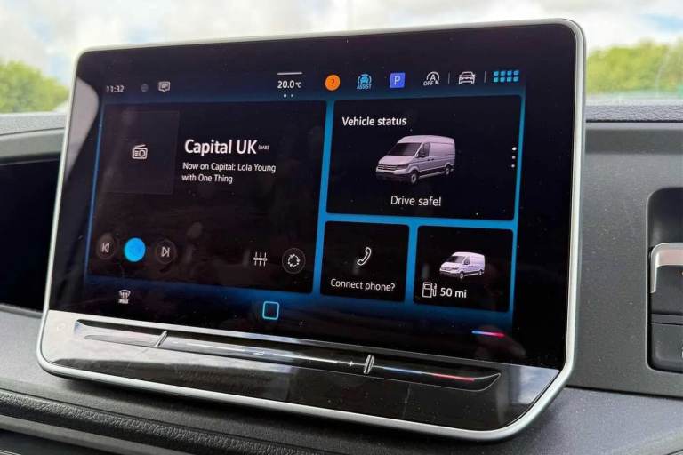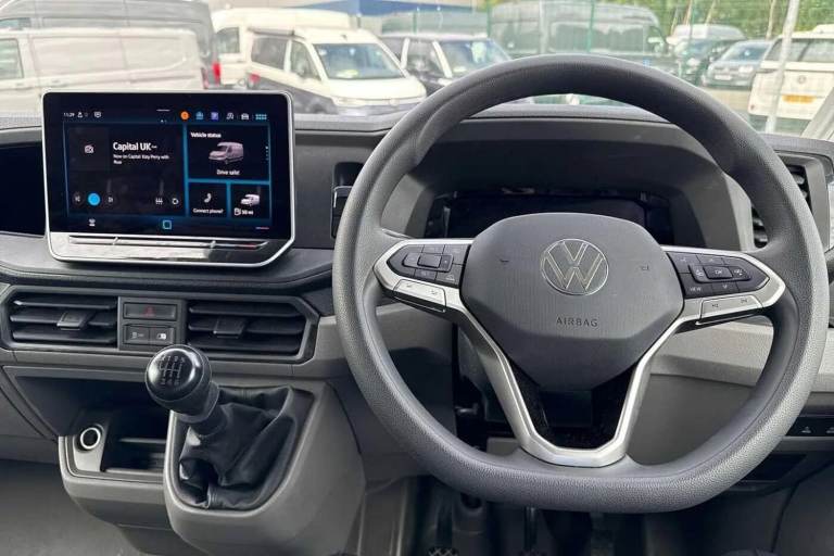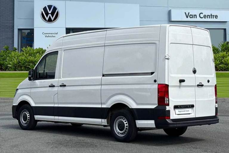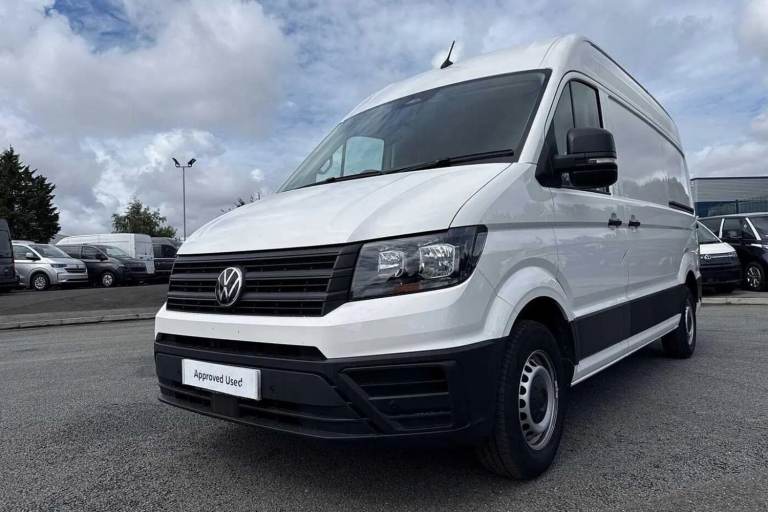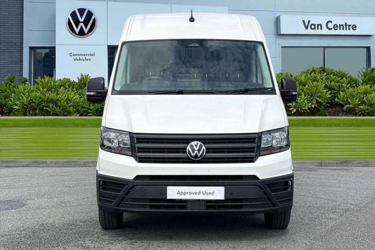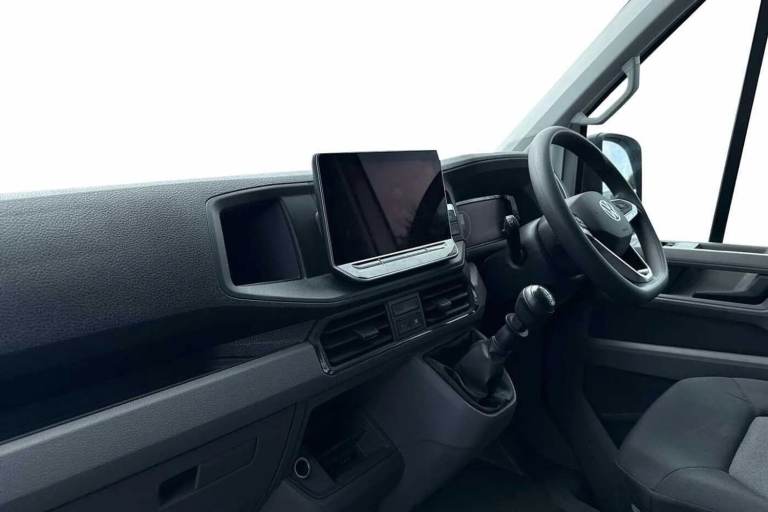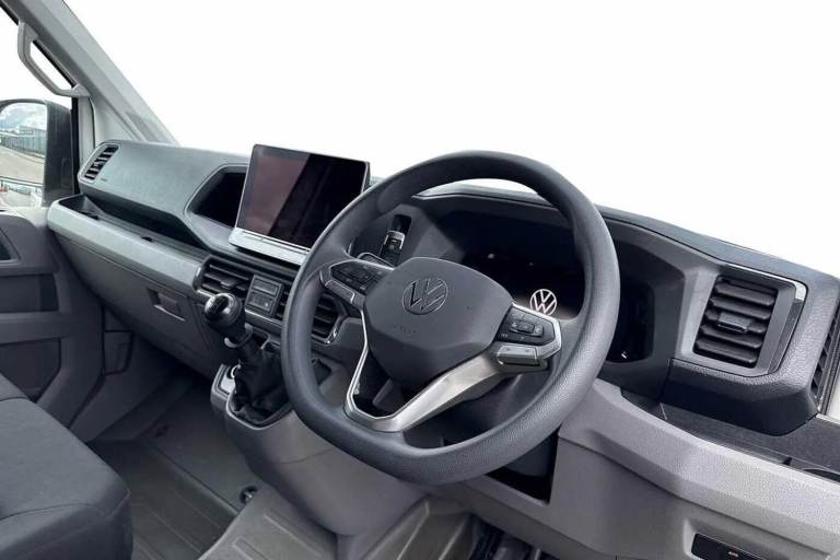 This Volkswagen Crafter CR35 Commerce Plus, finished in Candy White, is powered by a dependable 2.0-litre diesel engine paired with a manual transmission, delivering the efficiency, durability, and reliability required for demanding day-to-day work. For added convenience and safety, it is equipped with electrically heated and adjustable wing mirrors, automatic headlights, and front and rear parking sensors, making manoeuvring in busy or confined spaces far easier. The ply-lined load area is designed for practicality, featuring rear wing doors and a side sliding door for flexible access, along with reinforced lashing rings and integrated handles to ensure secure cargo restraint and smooth loading and unloading. Comfort is a clear priority, with electronically controlled air conditioning maintaining a pleasant cabin temperature throughout the working day. A leather-wrapped multifunction steering wheel offers convenient access to key functions, while electronic cruise control with a speed limiter supports relaxed motorway driving and helps reduce fatigue on longer journeys. Technology is modern and easy to use, centred around a new digital dashboard and a large 10.4-inch infotainment touchscreen. Connectivity is seamless with DAB radio, Bluetooth mobile phone interface, and both wired and wireless App-Connect. Practical touches throughout the cab include multiple USB-C ports, a wireless charging pad, generous storage solutions including an overhead compartment, and a conveni...