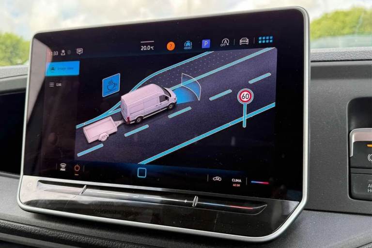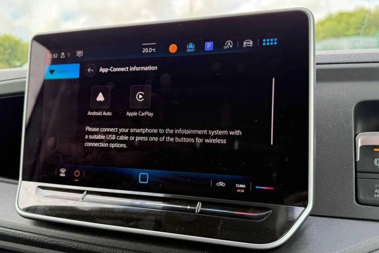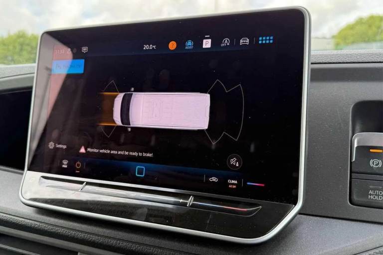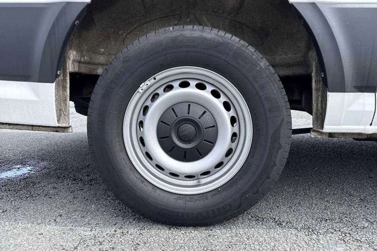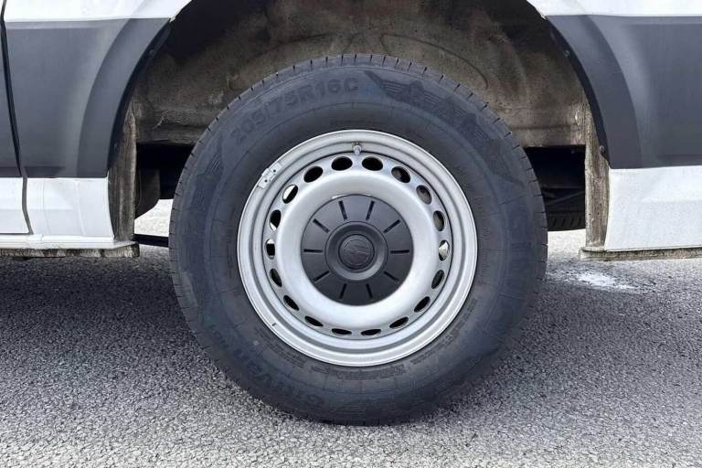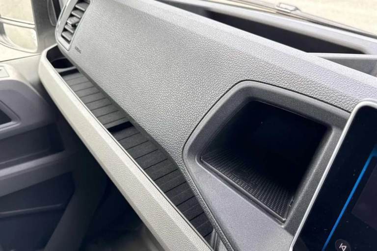 The Crafter CR35 Commerce Plus is finished in Candy White and powered by a 2.0-litre diesel engine paired with a manual transmission, offering dependable efficiency and reliability for everyday commercial use. For added convenience and safety, the van is equipped with electrically heated and adjustable wing mirrors, automatic headlight control, and front and rear parking sensors, helping to make manoeuvring in busy environments or confined spaces far easier. The durable ply-lined load area is designed for practicality, with rear wing doors and a side sliding door providing flexible access. Reinforced lashing rings allow loads to be secured safely, while integrated grab handles assist with smooth loading and unloading. Entering the cab from the drivers side, all key controls including windows, mirrors, lighting, and keyless start are positioned within easy reach. Driver comfort is well catered for, with an electronically controlled air conditioning system maintaining a comfortable cabin temperature throughout the working day. Connectivity and storage are thoughtfully arranged, with USB-C ports located around the cab, a wireless device charging pad, and a dedicated USB port positioned at the top of the windscreen, ideal for powering a dash cam. Additional storage solutions, including an overhead compartment, help keep tools and personal items organised and secure. The leather-wrapped multifunction steering wheel places essential controls at your fingertips, while electro...