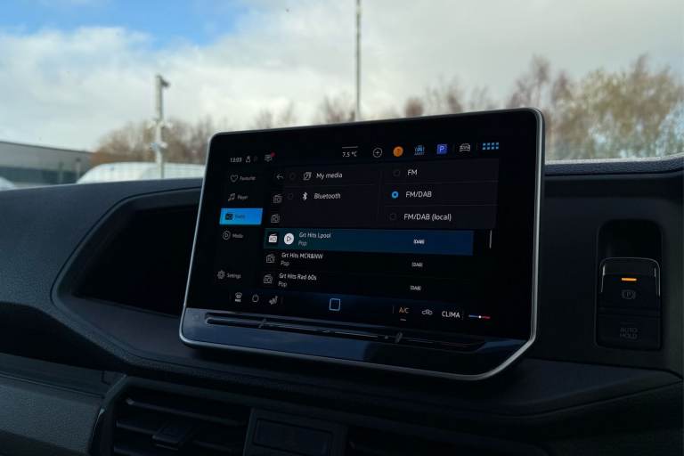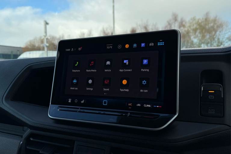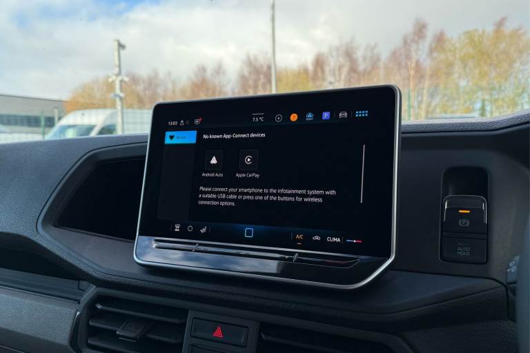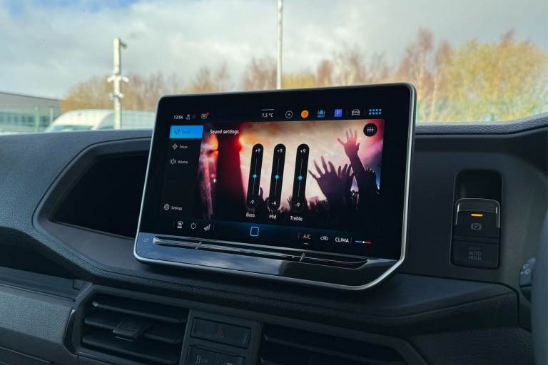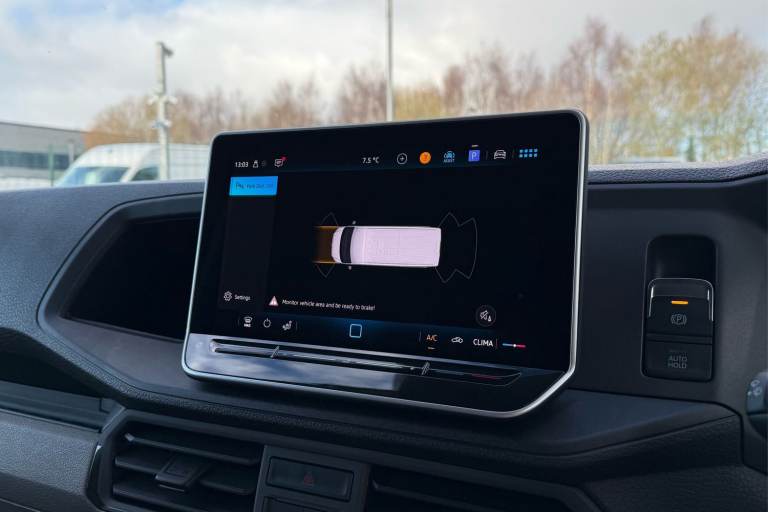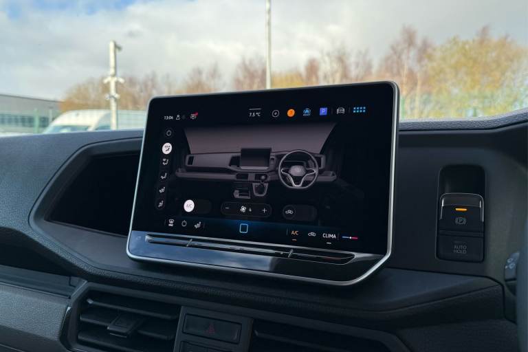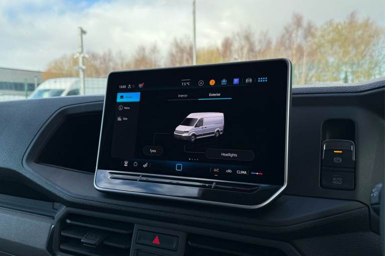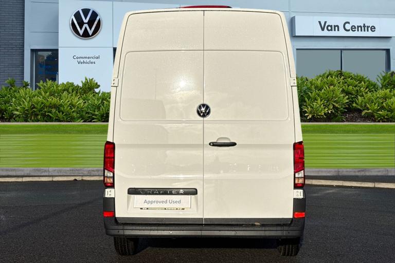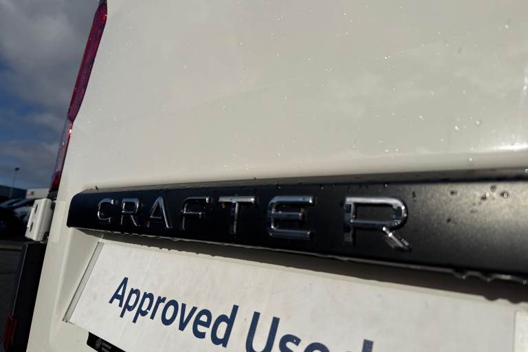 The Volkswagen Crafter CR35 Commerce MWB is finished in Candy White and powered by a dependable 2.0-litre diesel engine paired with a manual transmission and front-wheel drive, delivering efficient and reliable performance for demanding business use. Designed with practicality and safety in mind, the Crafter is equipped with automatic headlights along with front and rear parking sensors, helping to improve visibility and confidence when manoeuvring in busy urban environments or tight work sites. The ply-lined load space is built for versatility and ease of access, featuring rear wing doors and a side sliding door for convenient loading. Reinforced lashing rings ensure cargo remains secure during transit, while integrated grab handles assist when entering and exiting the load area. Inside the cab, the Business Pack provides an electronically controlled air conditioning system to maintain a comfortable working environment. A comprehensive storage package includes an overhead storage compartment, multiple USB ports positioned around the cab, including one at the top of the windscreen ideal for a dash cam, and wireless device charging to keep equipment powered throughout the day. The leather-wrapped multifunction steering wheel places key controls at your fingertips, while the new Digital Cockpit presents essential driving and vehicle information in a modern, clear, and customisable layout. Connectivity is well covered with DAB digital radio reception, Bluetooth mobile phone...