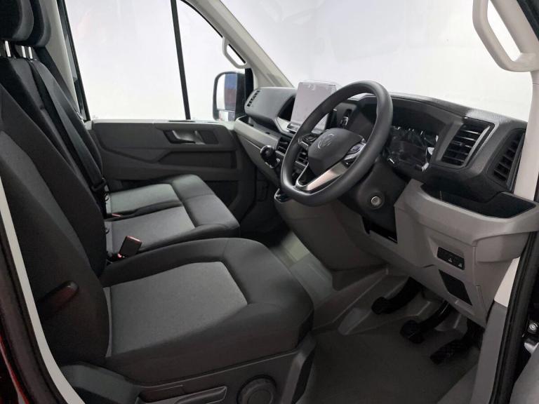 ..Advanced driver attention and drowsiness monitor,Blind spot monitor,Bluetooth,Digital clock,Digital cockpit with active Info display,Dynamic road sign display,E-call + We connect basic preparation,Forward collision warning with warning and braking reaction to vehicles, pedestrians and cyclists,Front assist including city emergency braking,Instrument cluster,Lights on warning buzzer,Locking fuel cap,Rev counter,Roof console for interior lighting control,Service indicator,Speedometer,USB socket at top of windscreen,Wireless charging,2 USB C ports in dashboard,DAB Radio,Auto low beam mode, Leaving home function and manual coming home function,Cab doors,Convex and wide angle mirror,Driver seatbelt warning light,Electric windows,Half painted front bumper,Heat insulating glass,Indicators in front door mirrors,One towing eye in front,Rear badges,Rear wing doors with 270 degree hinges,Special identification plate,Touch panel control for exterior lights,Unpainted radiator grille,Windscreen wiper auto control with light and rain sensor,Air recirculation system,Ashtray,Centre console storage tray,CFCU preparation,Charcoal filter,Document holder on centre console,Drinks holders,Electromechanical Servotronic steering,Electronically controlled heating system,Fully adjustable suspension type driver seat,Grab handles on rear entry pillars,Height adjustable head restraints,Height and reach adjustable steering wheel,Illuminated glove compartment with lockable lid,Interior light, including 2 reading lights,Interior light, switchable by door,Jack and tool kit,Preparation for interface for external use with terminal block,Storage compartments in doors and in step, right,Storage tray on dashboard,Two 12V outlets in the cab (in the dashboard),Without rear side trim panel passenger load compartment,Non-smokers pack - Crafter,3 point inertia reel belt on all seats,Automatic hazard light with emergency braking,Crosswind assist,Driver and front passenger airbag with front passenger airbag deactivation,Height adjustable seatbelts for outer cab seats,1 rigid key,Anti-theft alarm with interior monitor, back up horn and tow away protect, overhead storage with two 1-DIN, reading light, SAFELOCK with 2 remote keys,Central locking system with Keyless Go without SAFELOCK entry - Keyless entry and start,Engine immobiliser,ABS,Automatic post collision braking system,EBA,EBD,EDL,Electronic parking brake - hill hold control,ESP,Front disc brakes,HBA,Hill start assist,Start and stop system