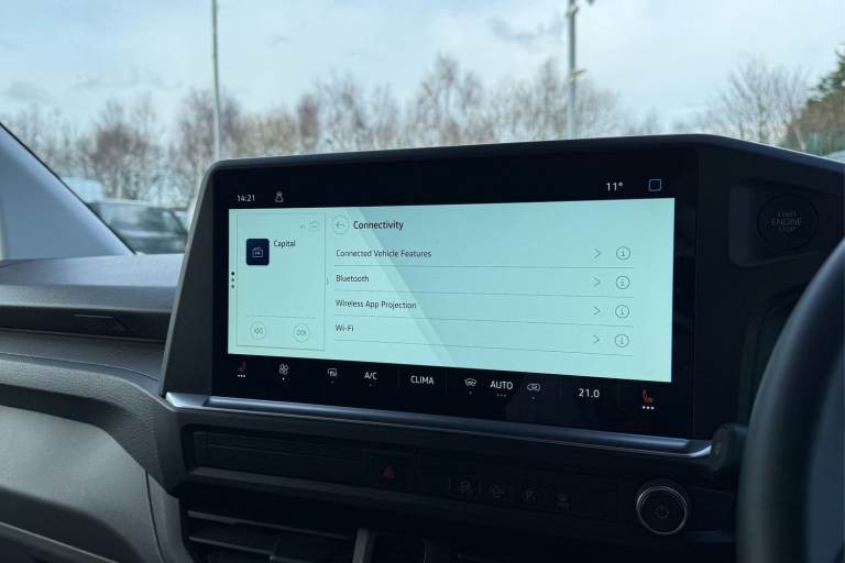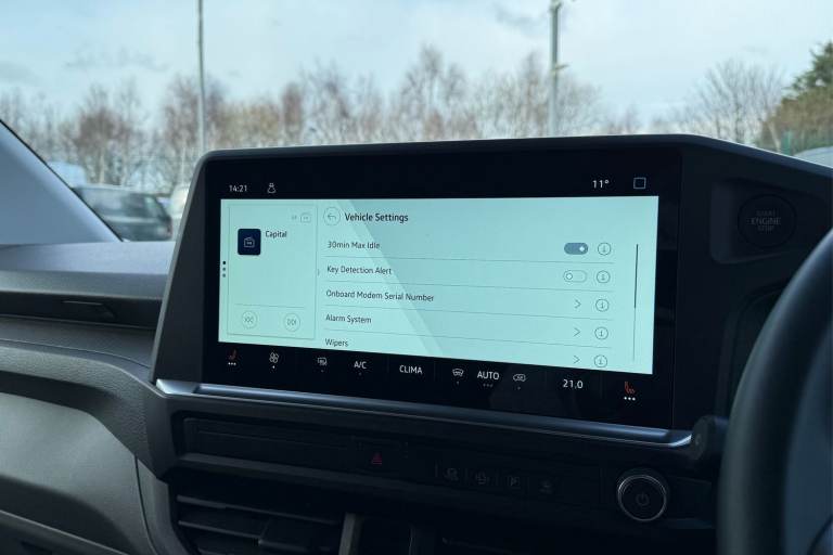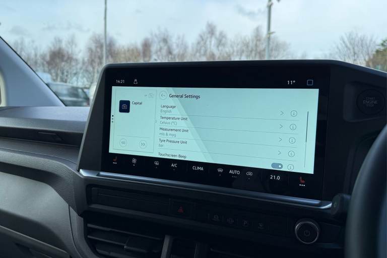 This Volkswagen Transporter T28 Panel Van Commerce Pro is finished in Stone Grey and powered by a 2.0 L TDI diesel engine paired with a six-speed manual transmission, delivering dependable performance and efficiency for daily working demands. Externally, it features alloy wheels and mud flaps, giving it a smart yet functional appearance. A heated front windscreen and rain-sensing wipers enhance visibility in poor weather conditions, while automatic headlights adjust seamlessly to changing light. Power-adjustable, heated, and power-folding mirrors add further convenience. Parking and manoeuvring are made simple with front and rear parking sensors supported by a rear-view camera, providing added confidence in tighter spaces. The ply-lined load area is accessible via rear wing doors that open to 180° or through the side sliding door, offering flexible loading options. Lashing rings help secure cargo safely, and a practical storage compartment beneath the passenger seat provides space for longer items or smaller tools and equipment. Inside the cab, comfort is prioritised with heated seats and air conditioning to maintain a pleasant environment all year round. The centre seat folds down to create a flat working surface, while generous storage throughout the cabin, including a dedicated compartment for glasses or sunglasses, keeps essentials organised and protected. USB ports are conveniently positioned around the cab, complemented by a wireless device charging pad. The leather...