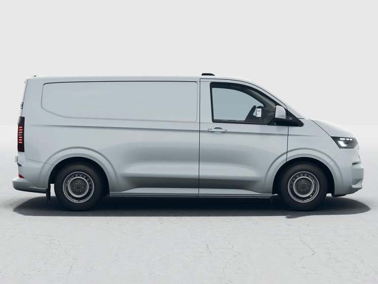 ..12'' digital drivers display, 13'' touchscreen infotainment display with wireless app connect and DAB radio, 5G Modem, Apple CarPlay and Android Auto, Cruise control, Dynamic road sign display, eCall emergency system, Electromechanical speed sensitive power steering, height and longitudinally adjustable steering column, Lane assist, Preparation of VW connect and connect plus, Wrong way driver warning, 4 speakers - 2x dashboard, 2x cab doors, Grained black door handles, Heat reflecting side window glass, High beam control, Laminated windshield made of heat-reflecting glass, LED rear combination lamps, Rear Transporter nameplate in black grained decorative trim, Vehicle opening configuration 1x 1st row of seats, 2x all doors, 2x 15-W USB data/charging ports in dashboard and 1x USB-C, 1x USB-A center bottom, 2x LED lights in load compartment, 4 way height and tilt adjustable head restraints, Black plastic scuff plate for sliding door in cargo without illumination, Cabin interior lighting, Lashing rings for reinforced floor covering, Narrow centre console with cup holder and compartment for mobile phone, Overhead storage compartment, Plastic gear lever, Roof grab handle on front passenger side, Rubber floor covering in cab, Standard glove compartment, Striped fabric upholstery, Without passenger seats in load compartment, Exterior pack 1 - Transporter, Interior trim pack - Transporter, Driver and front passenger airbag with front passenger airbag deactivation, Dual tone horn, Front and curtain airbags for driver and front passenger, Seat belt pretensioner for driver seat, Electronic immobiliser, Preparation for alcohol ignition interlock, 5+ Promise, Alternator - 230A, Electronic stability control, ABS, ASR with deactivation button, hill start assist and brake assist system