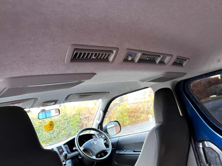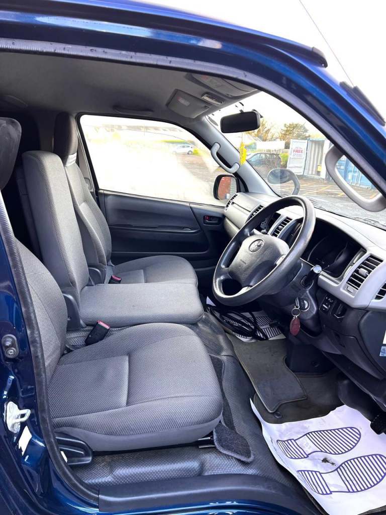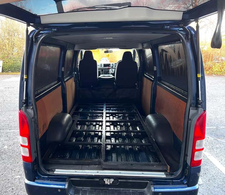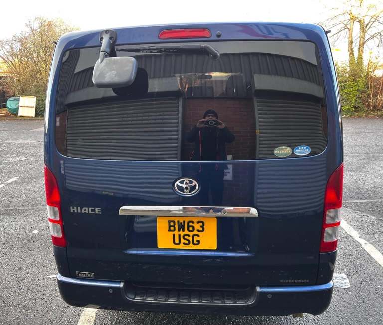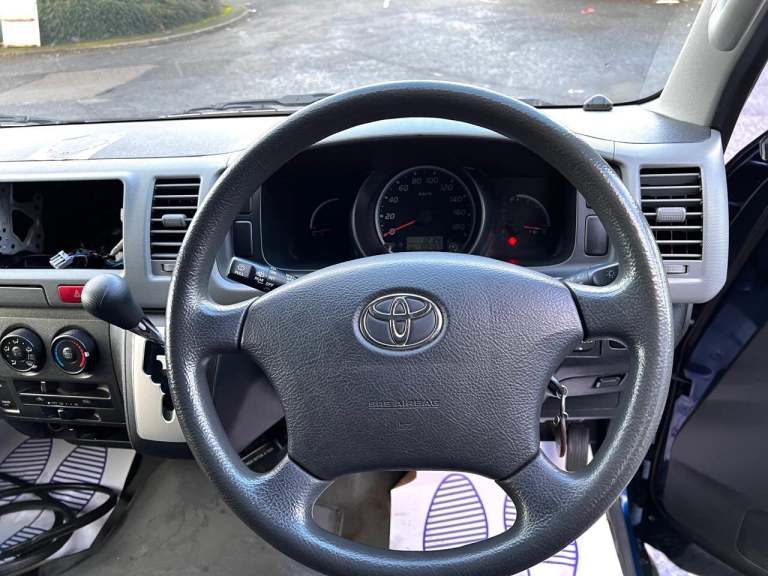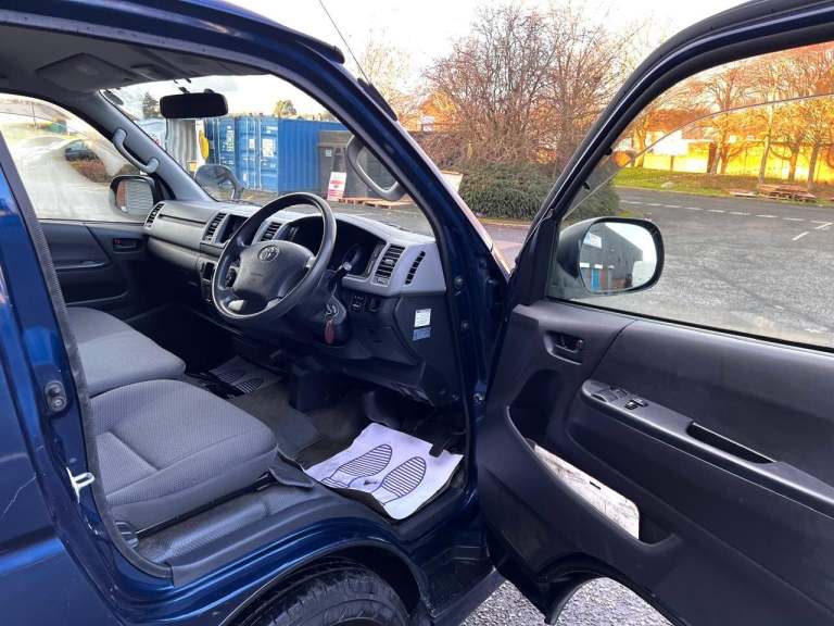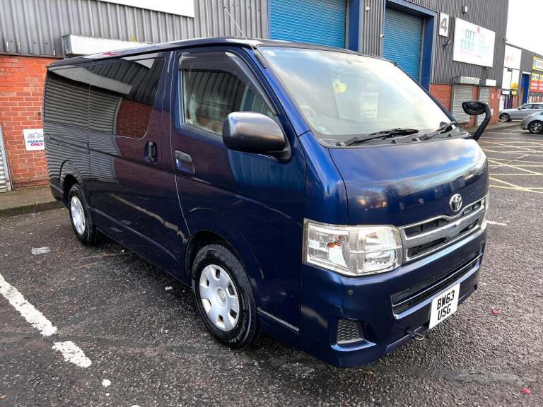 This is a blue Toyota Hiace, made in 2014. It’s a practical van, powered by petrol and has a 1990cc engine. The Hiace is a fairly large vehicle, good for carrying lots of things, like for a business or a trade. It’s generally known for being a reliable and sturdy vehicle. It could be a good choice for small businesses or anyone needing space for deliveries.