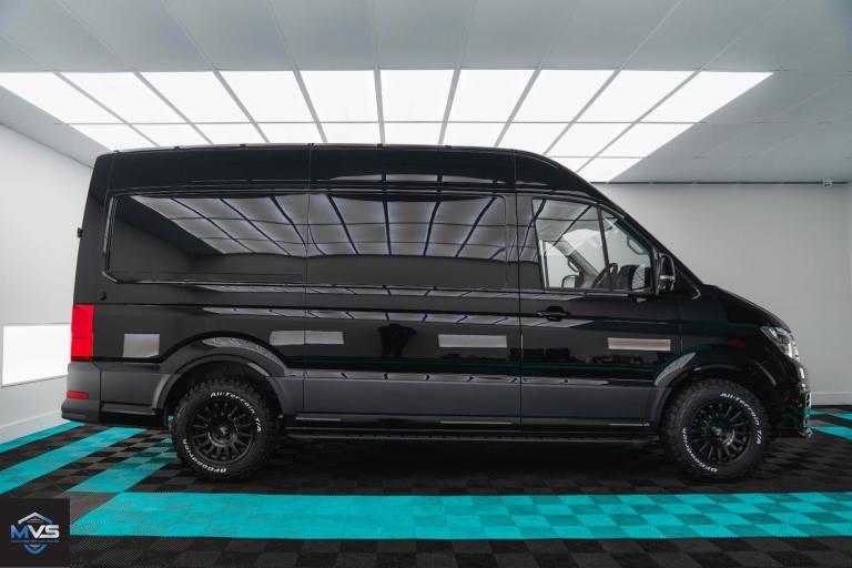 SECURE NOW - BRAND NEW 26 REG VOLKSWAGEN CRAFTER CR35 TDI MEDIUM LENGTH HIGH ROOF COMMERCE PLUS - TOP SPEC 180BHP IN BLACKHIGHEST SPEC VW CRAFTERS IN THE COUNTRY - NEW UPGRADED DASH & CAR PLAY SCREENADDED LED LIGHT PACK & DAYTIME RUNNING LIGHTS - FRONT SPLITTER - SIDE STEPS - FULLY COLOUR CODED WITH BLACK GLOSS TOUCHES - TOP SPEC INCLUDES REVERSE CAMERA - HEATED SEATS - AIR CON - CRUISE CONTROL - DAB TOUCHSCREEN WITH APPLE/ANDROID CAR PLAY - ELECTRIC WINDOWS & MIRRORS - MULTIFUNCTIONAL HEATED LEATHER STEERING WHEEL - HEATED WINDSCREEN - HEATED SEATS PLUS LOADS OF FACTORY EXTRAS INCLUDED 1 X DEEP BLACK 1 X INDIUM GREY R LEATHER SEATS ADDED EXTRA £1250 + VAT / SPORTS SEATS £1750 + VAT BUSINESS LEASE AVAILABLE - FREE UK DELIVERY - HP FINANCE WITH BALLOON PART X WELCOME