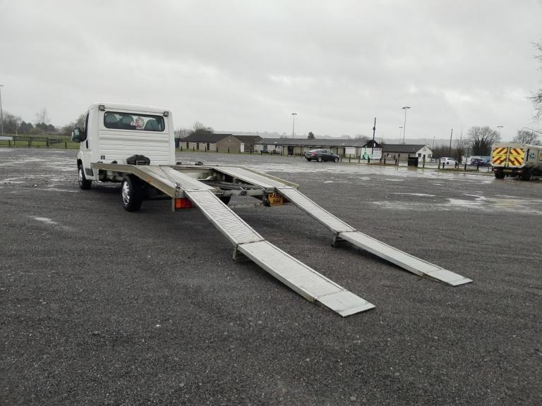 This particular truck in this advert is a late 2012 62 plate Peugeot Boxer 2.2 and boasts a fantastic aluminium lightweight 17ft bed depending on where you measure it from. It has a good quality 13,000lbs pull Winch-It remote winch, work lights and Parrot hands free kit.