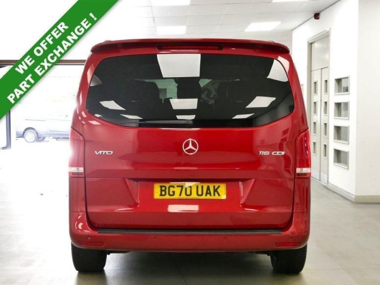 NO VAT ! ..70 Plate Mercedes-Benz Vito 116 2.1 CDI 160 BHP RWD L1 SWB Sport Edition 7G Automatic 5dr Crewcab 5 Seater .. High Spec NO VAT Example in Metallic Jupiter Red with Air Con , Alloys , FACTORY SAT NAV MEDIA , 5 SEATS , 7G AUTOMATIC GEARBOX , BLACK LEATHER INTERIOR , GLAZED TWIN SIDE ACCESS DOORS + GLAZED TAILGATE , L1 SHORT WHEEL BASE , Electric Windows + Mirrors , Remote Central Locking , Power Folding Mirrors , Privacy , Bluetooth , Cruise Control , Factory Front and Rear Parking Sensors , Rear Parking Camera , Carpet Lined Rear Cargo Lining , Roof Bars , Boot Spoiler , Plus all usual styling and refinements found in the Higher Spec Sport Edition models .. Euro 6 Compliant .. 63000 Miles , Excellent History ( 2 x Main Dealer Services ) .. Great Spec , Best of all , No VAT To Pay !, OVER 600 VANS IN STOCK ! , OPEN 7 DAYS ! , VANSTAR IS YORKSHIRE#039;S LARGEST VAN CHOICE , WE SPECIALISE IN NO VAT VANS , EURO 6 VANS , CREWCAB - KOMBI VANS and TIPPERS and LUTONS ! .