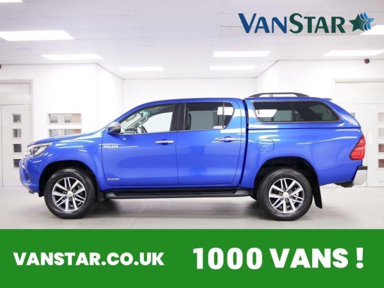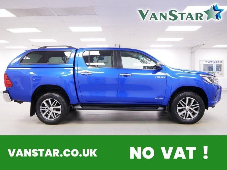 NO VAT ! .. 70 Plate Toyota Hilux 2.4 D-4D 150 BHP Invincible Edition 4WD Crewcab Pick up 5dr .. High Spec NO VAT Example in Metallic Nebula Blue with Air Con , Alloys , COLOUR CODED GLAZED REAR CANOPY , TOW PACK , FOUR WHEEL DRIVE, RARE MANUAL GEARBOX , Electric Windows + Mirrors , Bluetooth , Remote Central Locking , DAB Radio , Rear Camera , Load Liner , Roof Bars , Tow Pack , Plus all usual styling and refinements found in the Higher Spec Invincible Edition models .. Euro 6 Compliant .. ONLY 1 OWNER FROM NEW , JUST 45000 MILES , Excellent History ( 5 x Services ! ) .. Great Spec , Best of all , NO VAT TO PAY !, OVER 600 VANS IN STOCK ! , OPEN 7 DAYS ! , VANSTAR IS YORKSHIRE#039;S LARGEST VAN CHOICE , WE SPECIALISE IN NO VAT VANS , EURO 6 VANS , CREWCAB - KOMBI VANS and TIPPERS and LUTONS ! .