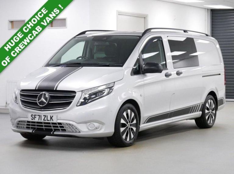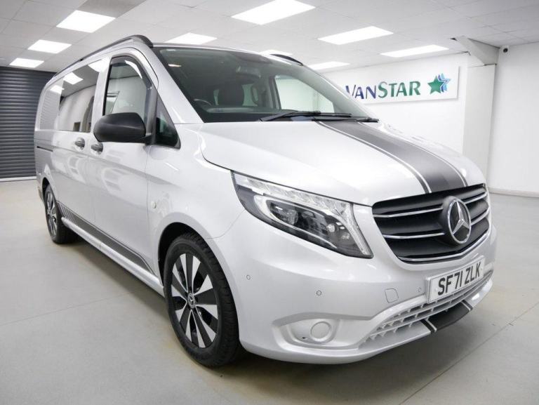 71 Plate Mercedes-Benz Vito 119 2.0 CDI 190 BHP RWD L2 Long Wheelbase 9G Automatic Sport Edition Crewcab 5 Seater .. High Spec Example in Brilliant Silver with Air Con , Alloys , SAT NAV - CARPLAY , FULL BLACK LEATHER INTERIOR , 9G AUTOMATIC GEARBOX , REAR WHEEL DRIVE , L2 LONG WHEELBASE , 5 SEATER CREWCAB , TWIN SIDE ACCESS DOORS - TAILGATE SPEC , Electric Windows + Mirrors , Privacy Glass , Limiter + Cruise Control , Bluetooth , DAB Radio , CarPlay Media , Park Sensors , Tow Pack , Roof Rails , Sport Edition Decals , Plus all usual styling and refinements found in the Higher Spec Sport Edition models .. Euro 6 Compliant .. 2 Owners , Just 70000 Miles , Excellent History ( 3 x Main Dealer Services ! ) .. Great Spec , In Stock Now , Ready To Go !, OVER 600 VANS IN STOCK ! , OPEN 7 DAYS ! , VANSTAR IS YORKSHIRE#039;S LARGEST VAN CHOICE , WE SPECIALISE IN NO VAT VANS , EURO 6 VANS , CREWCAB - KOMBI VANS and TIPPERS and LUTONS ! .