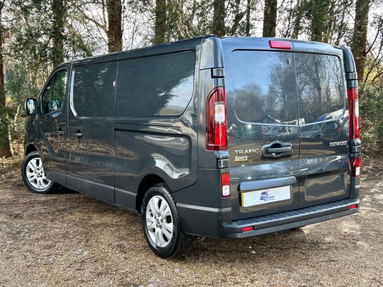 ( Price is Plus VAT @ 20% ) * 130PS Facelift Model Sport * Finished in Highland Grey Metallic this Renault Trafic LWB has been owned by a major lease company from new and covered 119079 miles, supplied with a Renault Service History. Fitted with the 130PS 2.0 dcI120PS Euro6 compliant diesel engine, the Sport specification includes features such as 17inch alloy wheels, air conditioning, satellite navigation with 8inch Touchscreen, cruise control, LED daytime running lights, auto lights and wipers, electric windows, electric door mirrors, remote central locking and front and rear parking sensors. Behind the full height bulkhead the load area is ply lined and accessed via unglazed rear barn doors or a single sliding side door.We are a family-owned and run business, selling a range of commercial vehicles and campers. All our vehicles are from established and trusted sources, presented fully valeted throughout and sold with our standard package of our own Comprehensive Nationwide Warranty, a minimum of 6 Months MOT and a pre-delivery service and inspection. WhatsApp video walk around videos are available on request and if you have a van, car or 4x4 we can take part exchange with competitive finance packages also available.