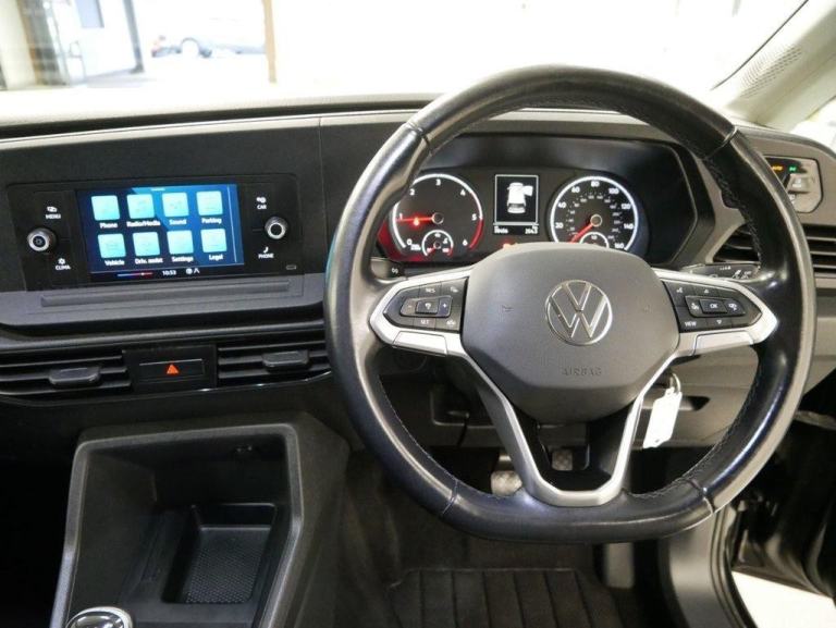 , 15in Steel Wheels - Black with Wheel Trims, 3-Point Seat Belts in Front - Pretensioner and Height Adjustable, ABS - Anti-Lock Braking System, Air Conditioning - Climatic Air Conditioning System - Manual in Cab, Airbag for Driver and Front Passenger with Front Passenger Airbag Deactivation, Armrest - Drivers, Automatic Hazard Lights Activation Under Emergency Braking, Automatic Post-Collision Braking System, BAS - Brake Assist System, Black Door Mirrors and Door Handles, Body Coloured Bumpers, Bulkhead - Full Solid - High without Window, Composition Audio Radio System with 6.5in Colour Touch-Screen and 2 Speakers., Cruise Control with Speed Limiter, Decorative Inserts - Beige Birch Vein, Differential Lock - Electronic, Door Mirrors - Electrically Adjustable, Driver Alert System, EBD - Electronic Brakeforce Distribution, ESP - Electronic Stability Programme, Electric Windows - Front, Electrically-adjustable Lumbar Support for Driver Seat and Manual Lumbar for Passenger Seat, Electronic Engine Immobiliser, Electronic Parking Brake with Auto Hold Function, Emergency Call Control Unit with eCall, Front Assist with Pedestrian Monitoring Detection and City Emergency Braking, Glovebox - Illuminated - Lockable, H7 Twin Halogen Headlights, Heat Insulating Windscreen, Interior Light Concept in Passenger Compartment, LED Interior Light in Headliner, Load Lashing Rings x6, MSR - Engine Drag Torque Control, Manual Height Adjustment for Front Seats, Multi-function Display, Parking Sensors - Rear, Power Assisted Steering - Servotronic Speed Sensitive, Rear View Mirror with Anti-Dazzle Function, Rear Wing Doors Without Window Aperture, Remote Central Locking with Interior Locking and Two Remote Keys, Roof Rail Preparation, Rubber Floor Covering in Cab, Separate Daytime Running Lights with Automatic Headlight Control, Single Near-Side Sliding Door, Steering Column - Reach and Rake Adjustable, Steering Wheel - Leather Trimmed - Multifunction, Sun Visor with Mirror and Airbag Label - Passenger, TCS - Traction Control System, Tyre Mobility Kit in Lieu of Spare Wheel, We Connect Preparation, Windscreen Wiper with Variable Intermittent Delay and Wash-Wipe System, ergoComfort Front Seats - Manual Height Adjustment - Seat Cushion Angle and Depth Adjustment on Drivers Seat