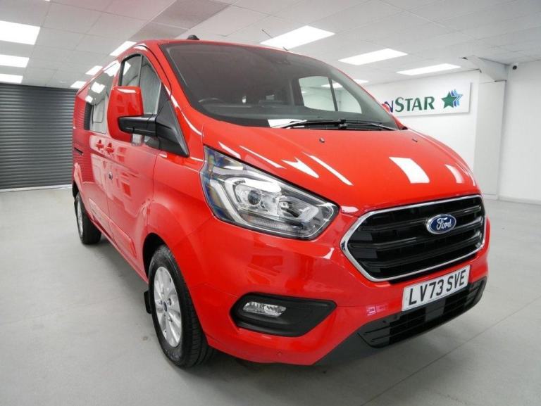 NO VAT ! .. 73 Plate Ford Transit Custom 300 2.0 EcoBlue 170 BHP Long Wheelbase Limited Edition Automatic 5dr Crewcab 5 Seater .. Stunning High Spec NO VAT Example in Race Red with Air Con , Alloys , 5 SEATS , FACTORY SAT NAV MEDIA , HIGHER 170 BHP OUTPUT ENGINE , AUTOMATIC GEARBOX , TWIN SIDE ACCESS DOORS + TAILGATE , L2 LONG WHHELBASE , Heated Front Seats , Heated Front Screen , Electric Windows + Mirrors , Power Folding Mirrors , Privacy , Remote Central Locking , Bluetooth , Cruise Control , Factory Front and Rear Parking Sensors , Reverse Camera , Tailgate Spoiler , Cargo Lining , Bulkhead , Tow Pack Plus all usual styling and refinements found in the Higher Spec Limited Edition models .. Euro 6 Compliant .. ONLY 1 OWNER , JUST 22000 MILES FROM NEW ! Excellent History ( 2 x Services ) .. Great Spec , Best of all , No VAT To Pay !, OVER 600 VANS IN STOCK ! , OPEN 7 DAYS ! , VANSTAR IS YORKSHIRE#039;S LARGEST VAN CHOICE , WE SPECIALISE IN NO VAT VANS , EURO 6 VANS , CREWCAB - KOMBI VANS and TIPPERS and LUTONS ! .