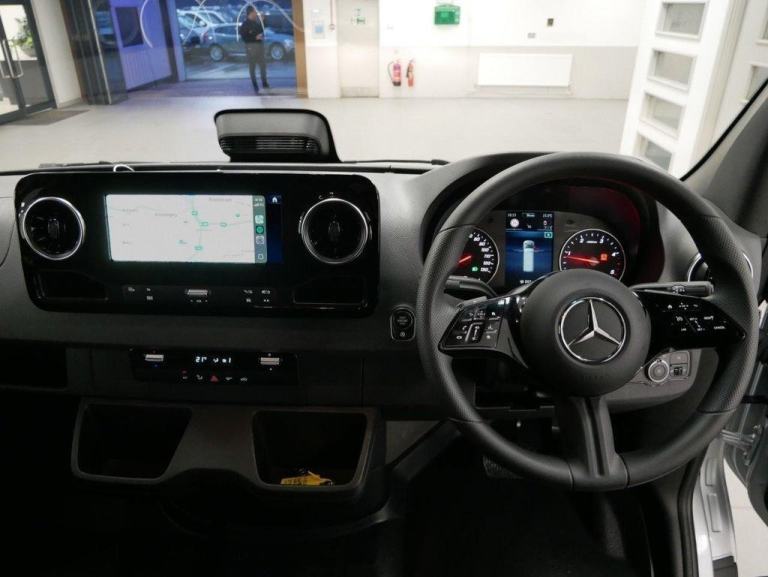 , High Tech Silver, 16in Steel Wheels, 93-Litre Fuel Tank, ATTENTION Assist, Acoustic Package, Active Brake ASSIST, Active Lane Keeping Assist, Adaptive Brake Lights, Airbag - Co-Driver, Airbag, Front Drivers Seat, Armrest for Drivers Seat, Blind Spot Assist, Breakdown Management, Bulkhead - Full-Length Partition, Cable Duct on Side Wall, Coat Hook in Cab, Comfort Overhead Control Panel, Communication Module - LTE - For Digital Services, Crosswind Assist, Cruise Control, DAB Digital Radio Tuner, Deletion - Vehicle Lowering, Digital Extra - Smartphone Integration, Digital Extra: Remote Services Plus, Digital Owners Manual, Door Mirrors - Electrically Adjustable and Heated, Double Co-Driver Seat, Driver Camera, ECO Start-Stop Function, Electrical Components for Trailer Socket, Electrically Foldable Exterior Mirrors, Entrance Handle on Left-hand Rear Corner Pillar, Grab Handle - Load Compartment Sliding Door at Partition, Heavy Duty Battery - 12V 92Ah, Height and Rake Adjustable Steering Wheel, Hill Start Assist, Hydraulic Jack, Instrument Cluster with Colour Display, Intelligent Speed Assistance, Interior Lights - Load - Passenger with Door Contact, Lighting - Headlight Assistant, Lights for Left Hand Traffic, Longitudinal Member Reinforcement, MBUX Multimedia System, Mercedes-Benz Emergency Call System - eCall, Multifunction Steering Wheel, Noise Regulation, Omission Parking Lamp, Pre-Installation for Switch Panel, Preinstallations Electrical System - PSM, Rain Sensor, Rear Doors, Double-Wing, Opening to Side Wall, Reversing Camera, Seat Belt Reminder - Driver, Seat Belt Reminder for Co-Driver Seat, Shelf Above Windscreen, Side Marker Lights, Sideguard Assist, Sliding Door - Left, Spare Wheel, Spare Wheel Bracket Below Frame End, Starting Aid Contact, Stowage Compartments underneath Cockpit, Summer Tyres, Suspension - Stabilisation Level I, TEMPMATIC Semi-Automatic Climate Control System, Temperature Indicator, Terminal Strip for Electrical Connection, Third Brake Light, Towing Eye - Rear, Tyres - Tyre Pressure Monitoring for Front and Rear Wireless, Tyres 235-65 R16 C, Tyres without Name of Make, USB-C Socket - 5V, Uprated Front Axle Weight Capacity, Wood Flooring