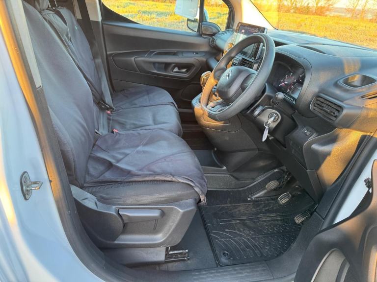 Introducing the 2021 Citroen Berlingo 1.5 BlueHDi 650 Enterprise M Pro Panel Van with a powerful diesel engine and only 95230 miles on the clock. 3 months warranty given. This ULEZ compliant vehicle comes with a 3-seat configuration and 5 doors, making it perfect for transporting goods and equipment. The MOT is valid until 17/09/2026, providing peace of mind for the future. With a gross weight of 2000kg, this single cab panel van is built for heavy-duty usage. The interior features a 8in Colour Touchscreen with Citroen Connect DAB Radio, Bluetooth Handsfree, and USB Socket, ensuring a comfortable and connected driving experience. Additionally, the Free2Move Connect Fleet Telematics system comes with a 6-month subscription from new, allowing for efficient management of the vehicle's usage. The 15in Steel Wheels with Twin Wheel Cover ensure a smooth ride and added durability. Don't miss out on this reliable and efficient commercial vehicle. Full service history Features Include: 12v socket in dashboard, 8in colour touchscreen with citroen connect dab radio - bluetooth handsfree - usb socket and aux-in jack, citroen connect box with emergency and assistance system, free2move connect fleet telematics (6 month subscription from new), 15in steel wheels with twin wheel cover, electric windows - front with one touch operation, electrically folding - adjustable door mirrors with temperature sensors, lockable fuel cap, side rubbing strips, spare wheel - full size steel, two-speed and intermittent front wipers, 6 floor-mounted load securing rings, 6 way adjustable drivers seat - includes lumbar adjustment and under seat storage, air conditioning, cup holders for driver and passenger on either side of the dashboard, drivers seat height adjustment - lumbar - rake and reach adjustment, extenso modular folding passenger bench seat with pivoting writing table - storage under central seat - load through hatch in bulkhead and load protection cover compliant with iso27956, front door pockets with 1.5l bottle holders, full bulkhead, hard plastic floor protection in cabin, nearside side sliding door, overhead storage shelf, top box storage compartment, unglazed asymmetric rear doors opening to 180 degrees, airbags - driver, alarm - parametric and volumetric - thatcham category 1 approved alarm with tilt sensor, automatic activation of hazard warning lights on major deceleration, automatic electronic parking brake, dashboard mounted central locking push buttons and auto locking above 7 mph, door opening warning light and audible lights-on warning, esc with hill start assist - abs braking including eba and ebfd, remote central locking with deadlocks, rolling code transponder immobiliser, seat belt unfastened warning - driver, visible vehicle identification number at base of windscreen, cruise control with programmable speed limiter, electric power assisted steering with reach and rake adjustable steering column, multi-function on-board trip computer, rear parking sensors, rev counter with maintenance and gear efficiency - gei - indicators, tyre pressure monitor, front fog lights, height adjustable halogen headlights, high level third brake light