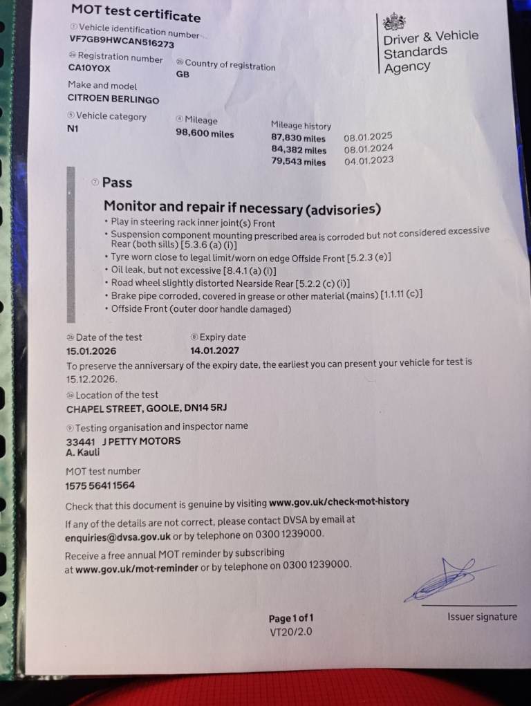 For sale 2010 Citroen Berlingo first 600 hdi car derived van light goods vehicle 2 seats in white runs and drives had MOT done on 15/01/2026 spare wheel in the back £1000 O.N.O