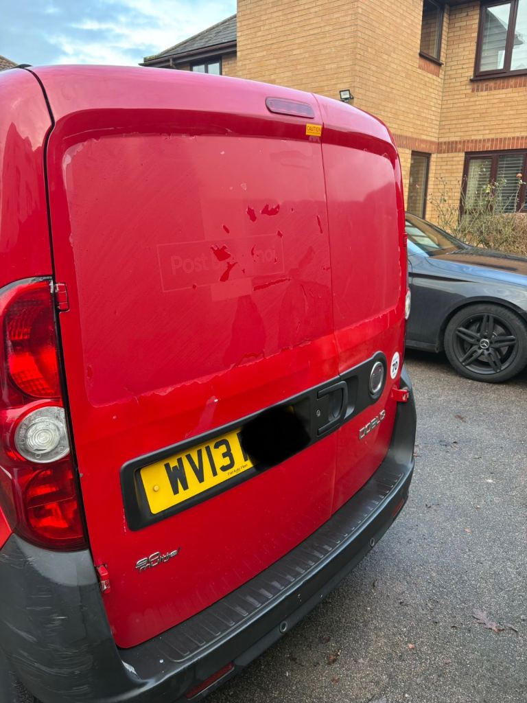 Please note on the back door on the right hand side there is grey spray paint now (easily covered by sign writing)