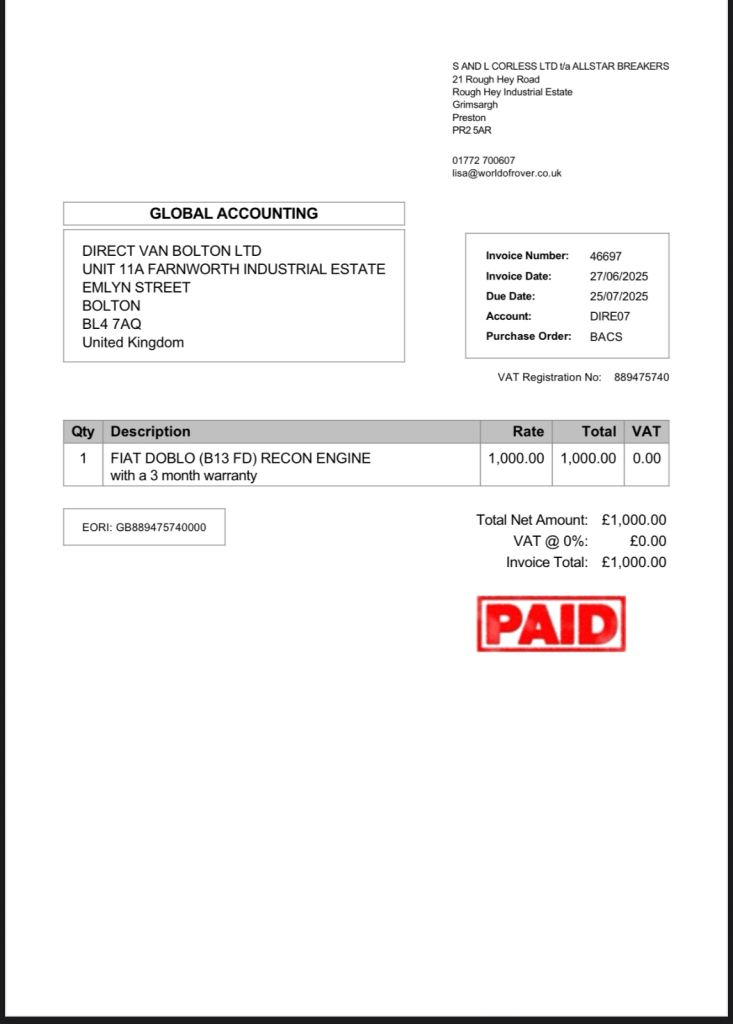Reconditioned engine ( Receipt available ).