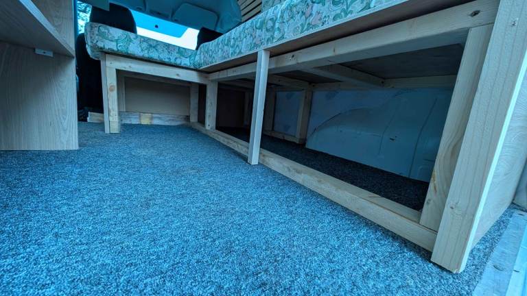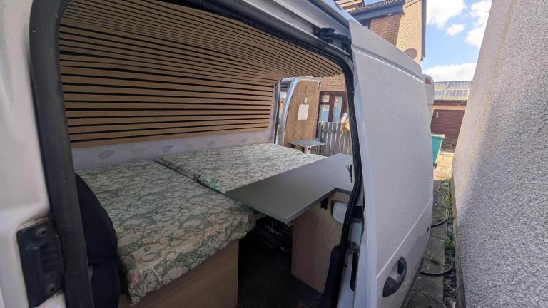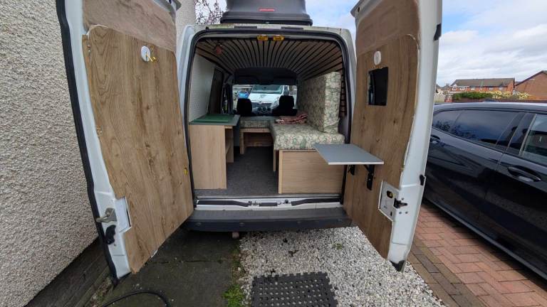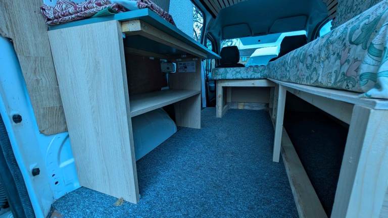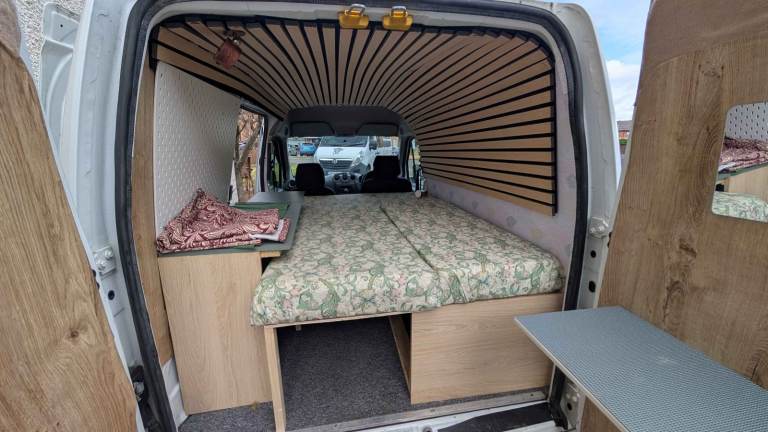Simple storage and bed set up in rear. Wire opening bulk head is available if required as a working van.
