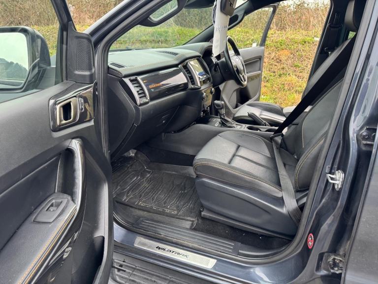 This 2022 Ford Ranger 2.0 EcoBlue Wildtrak Pickup Double Cab 4dr Diesel Auto 4WD Euro 6 (s/s) (213 ps) is a reliable and powerful vehicle with only 78450 miles on the clock. In a sleek Sea Grey colour, this pickup is ULEZ compliant and comes with a Trailer Tow Pack and electric Mountain Top Lockable Tonneau Cover for added convenience. With a MOT expiry date of 30/06/2026, this 4-door, 5-seater pickup is perfect for long journeys and hauling heavy loads. The interior features Journey Grain Partial Leather in Ebony, providing comfort and luxury. The 18in Alloy Wheels and Cargo Area Management System make transporting goods a breeze. Powered by a diesel engine, this Ford Ranger is a great choice for anyone in need of a durable and efficient vehicle. Full service history Features Include: 18in alloy wheels - 8in boulder grey-machined, body coloured plastic front bumpers, boulder grey exterior door handle, boulder grey exterior mirror finish, boulder grey radiator grille, boulder grey step design rear bumper, chrome lift -decklid handle, dual power heated fold back mirrors with puddle lamps and signal, dyno grey sports hoop with side rails, electrically-operated windows with one-shot drivers window, front splash guard - mud flaps, heated windshield and rear window, inside chrome door handles, locking wheel nuts, moulded in colour tailgate handle, mud flaps - rear, painted front fender grill, privacy glass, rear bumper chromed steel step, roof rails, side step with brushed inserts, sports bar with high mounted brake light, sports hoop, under hood engine cover, 2 key fobs, abs - esp and roll-over mitigation, airbags - curtain, airbags - driver and front passenger, airbags - drivers knee bolster, airbags - front side, collision mitigation system, double locking power door lock with flip key, isofix child safety seat attachments, lane keeping aid, passive anti-theft system, passive keyless entry and start, power tailgate lock, spare wheel lock, thatcham category 1 security system, under body protection, cargo box power point plug, ford sync 3 single cd-dab radio - tmc and active noise cancelling, fordpass connect, power converter, rear power point plug, cruise control with asld -aeb and isa, epas - electric power assisted steering, fixed rear view camera, front parking aid, intelligent speed assistance, locking rear axle, rear parking sensors, tsr - traffic sign recognition, tyre pressure sensors, day-night inside mirror, driver seat back mounted map pocket, dual control system - eatc, ebony headliner, electrochromic inside mirror, front seats - driver and passenger heated seats, gearshift knob - leather, interior ambient led lighting, leather seat trim, load box bedliner, load box bedliner - power point and tie down hooks, load rest, loadbox inside tie down hooks, premium front and rear floor mats, rain sensitive windshield wipers, roof storage for driver sunglasses, seats - drivers 8-way adjustment, sport leather stitched steering wheel, tailgate with easy-lift - lower mechanism, tie down rail with rope hooks, wildtrak door trim panel insert, daytime running lamps, headlights - led, high mounted stop lamp with cargo light, led front fog lamps