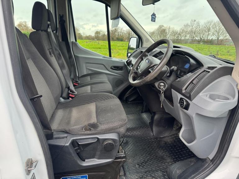 Ford transit crew tipper 2018 18reg 150k miles, engine rebuilt 14k miles ago due to wet belt breaking. Taken in part exchange drives superb mot runs till next September 2026. 3 months or 1000 mile warranty given no vat to pay. Features Include: 16in steel wheels, bodyside mouldings - wide - self colour, bumper - front body colour - partial, door handles - self coloured, door mirrors - blind spot eliminator and integrated side indicator, door mirrors - manual adjust, front grille - sterling grey, liftgate - cargo door handle - self colour, mud flaps - rear, rear bumper - self colour with integrated step, tyre inflator kit, wheel covers - half caps, windows - electrically-operated front with one-touch on drivers side, 8-way driver seat with fore-aft - recline -height and tilt, armrest - drivers, assist handle - located on b-pillar, bottle holder - twin 2 litre bottle capacity - facia-mounted, bulkhead - full steel, courtesy lights - header-mounted front with theatre dimming, doors - passengers sliding side load door and step, doors - unglazed rear doors - hinged for 180 degree opening - positive stop at 90 degree, floor covering - cab easy-clean rubber, glovebox with a4 file storage, headlining - cab - moulded, heater - positive thermal coefficient - ptc, interior lighting - battery saver - 30min, lac - load adaptive control, less easy clean floor, less steel spare wheel, load compartment - din 75410 compliant tie-down loops, loadspace compartment light, locks - audio mislock feedback - audible signal if a door is ajar when locking activated, overhead storage shelf, recirculation heater - front, seat tray-table, seats - dual passenger, steering column - rake and reach adjustment, steering wheel - 4 spoke polyurethane, storage - drivers side - storage compartment on facia top with lift up lid, storage - front door map pockets, storage - underseat stowage compartment under dual passenger seat, wipers - front variable-intermittent with electric wash, airbags - driver, anti-lock braking system - abs with electronic brake force distribution - ebd, curve control, driver seat belt minder, dual-circuit front and rear discs with self-adjusting servo-assistance and abs, eba - emergency brake assist, edcc - electronic dynamic cornering control, esc - electronic stability control, emergency brake warning, ford easy-fuel capless refuelling system, hill start assist, immobiliser - safeguard passive anti-theft system - pats - insurance-approved category 2 immobiliser, locks - auto locking on drive-away - doors automatically lock at 8 kmh or 5 mph, locks - auto relocking - doors relock after 45 seconds if no door is opened, locks - configurable unlocking, locks - key operated bonnet release, locks - power door deadlocks - shielded with strengthened mountings, locks - remote control central locking with one key fob, rsc - roll stability control, seat belts - 3-point diagonal inertia reel - all seats, side wind mitigation, traction control - tc, vehicle identification number - vin - visible, auxiliary connection point - 1x12v - 60a connection located under driver seat pedestal, ford connected audio system, power point socket - 2x 12v, battery - cold start -20 degree c, battery - single absorbent glass mat - agm, ford eco mode - driver information system, gearshift indicator light, power-assisted steering - pas, single agm battery, standard duty alternator - 150amp, suspension - front independent macpherson struts -variable rate coil springs - stabiliser bar - gas-pressurised shock absorbers and rear leaf springs, trip computer, water in fuel filter with sensor, daytime running lamps, headlights - courtesy delay