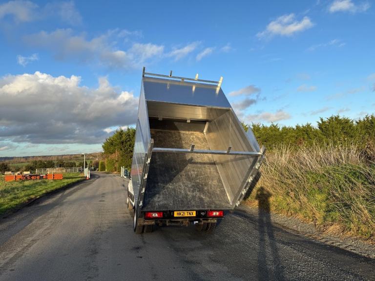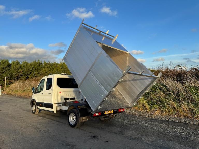 Ford transit double arb cab tipper 2021 21reg with Aircon choice of 5 arb tippers 51k miles full history just serviced.new alloy plank arb body crew area is ply lined out for tools dead locks fitted.6 months warranty given finance arranged delivery arranged.usual dealer facilities. Full service history Features Include: 16in steel wheels, black dual manual signal mirrors, bumper - front body colour - partial, door mirror - manual adjust - short arm, door mirrors - blind spot eliminator and integrated side indicator, driver large head - short arm mirror, electrically-operated front windows with one-shot up-down on drivers side, fixed rear windows, front grille - self colour, roof marker lights, side windows - second row fixed, single rear wheels, tinted glass, tyre repair kit, wheel covers - half caps, wide bodyside - grey moulding, 4.2in monochrome tft non-touch screen with new sync 4 system, power point - 2 x 12v located on instrument panel and in stowage bin, airbags - driver, curve control, dual-circuit front and rear discs with self-adjusting servo-assistance and abs, eba - emergency brake assist, esp and hill launch assist, ford easy fuel capless refuelling system with misfuel inhibitor, immobiliser - safeguard passive anti-theft system - pats - insurance-approved category 2 immobiliser, locks - auto locking on drive-away - doors automatically lock at 8 kmh or 5 mph, locks - auto relocking - doors relock after 45 seconds if no door is opened, locks - configurable unlocking - 2-stage unlocking, locks - key operated bonnet release, locks - power door deadlocks - shielded with strengthened mountings, mechanical parking brake, rsc - roll stability control, remote central locking with one key fob, seatbelts - 3 point diagonal inertia reel - all seats, vehicle identification number - vin - visible, alternator - standard duty 165amp, battery - cold start -20 degree c, epas - electric power assisted steering, gearshift indicator light, rear axle alt a, selectable drive mode, suspension - front independent macpherson struts -variable rate coil springs - stabiliser bar - gas-pressurised shock absorbers and rear leaf springs, trip computer, water in fuel filter with sensor, bottle holder - twin 2 litre bottle capacity - facia-mounted, config interior lighting battery saver - 10 minutes, day-night inside mirror, drivers 8-way seat adjustable with armrest, gearshift knob - moulded, header courtesy light, interior trim accent pack a, lac - load adaptive control, less steel spare wheel, lid glove box, locks - audio mislock feedback - audible signal if a door is ajar when locking activated, mykey, overhead console, partial molded headliner, rear 2-way head restraint, recirculation heater - front, rubber partial floor cover, steering column - rake and reach adjustment, steering wheel - 4 spoke polyurethane, storage - drivers side storage compartment on facia top, storage - front door map pockets, storage - underseat stowage compartment under dual passenger seat, tablet holder, unperforated cab back panel, vehicle maintenance monitor, wipers - front variable-intermittent with electric wash, daytime running lamps, halogen headlights with courtesy delay, headlights - halogen projector, headlights - levelling control, headlights - quad beam