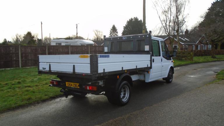 2014 14 ford transit 2.2 tdci 125 t350 utility double cab tipper, 6 speed manual, direct council, white, 97,000 miles, 3 seats, steel bulkhead, window guards for the rear storage area, radio cd player, traction control, heated front screen, electric windows, twin rear wheels, remote central locking, spare key, tow bar, clean truck ready to work, supplied with 6 months tax, years mot and fully serviced. finance available sttc, finance example sttc. vat deposit followed by 48 x £242.97 sttc. deposit and term can be changed to suit, please call for a personal finance quote