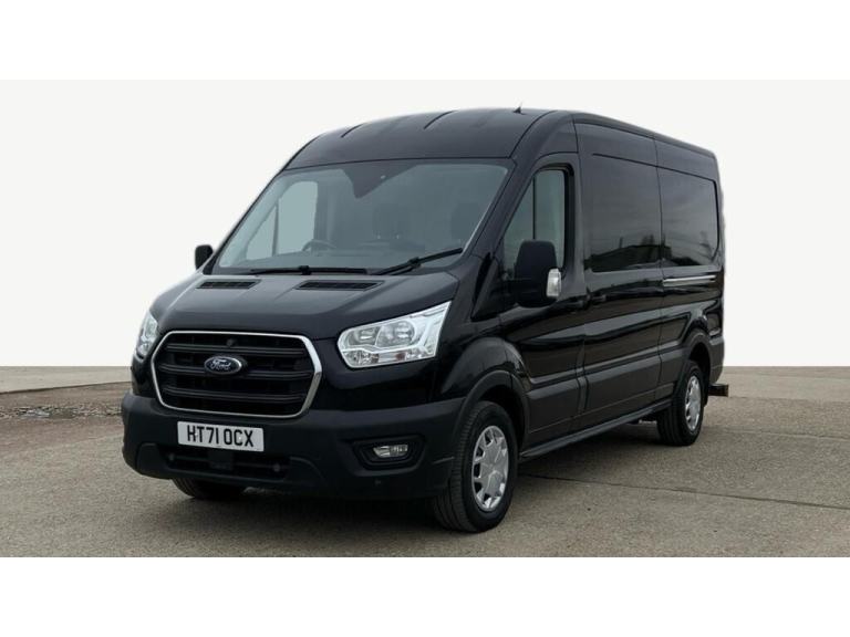 2022 71 reg Ford Transit 350 2.0 Tdci 130 L3 H2 Trend Ecoblue finished in Agate Black with spec to include parking sensors, air con, cruise control, bluetooth, bulkhead, ply lined, auto headlights, front fog lights, electric mirrors & windows, dab, pas.