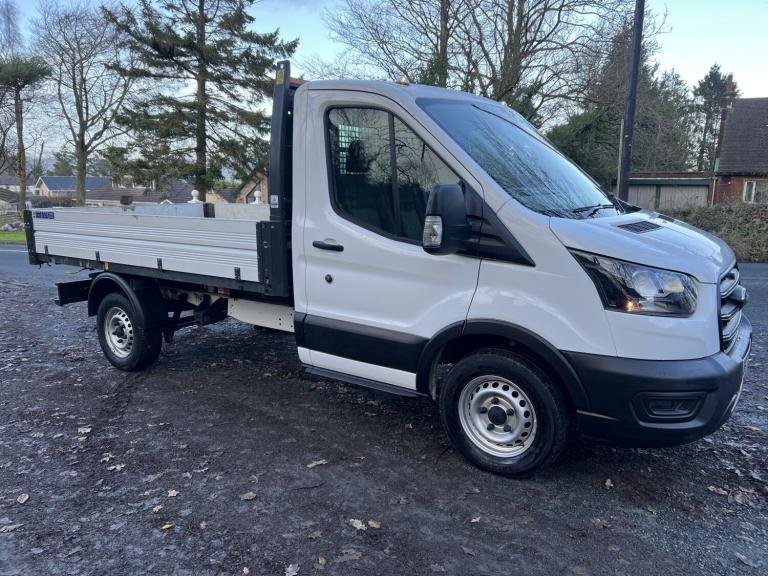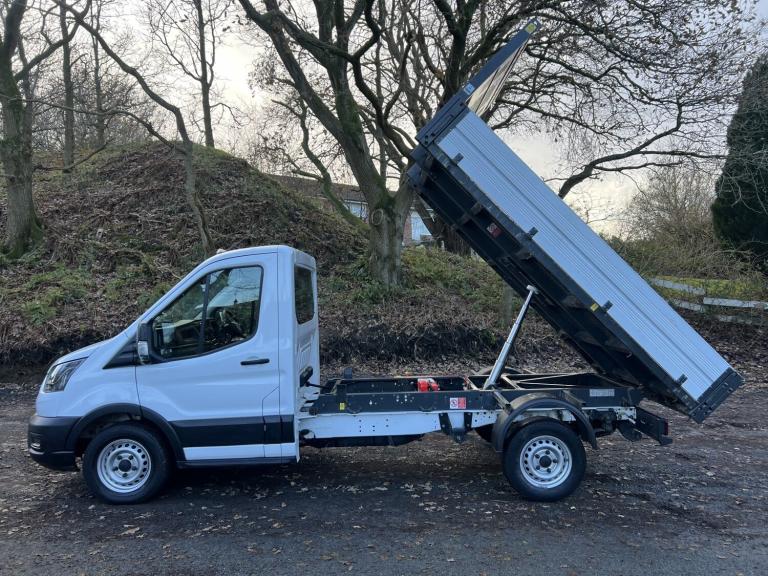2021, '71' plate Ford Transit 350 single cab tipper, Medium wheelbase with alloy 'One stop' body. Rear wheel drive. White, 2.0 Tdi, Euro 6. Spec includes: Alloy body tipper with drop down sides, Remote central locking, height adjustable seat, USB 12v charge ports, Bluetooth handsfree Stereo, 3 seater cab, ABS, Traction control, towbar etc, etc. 1 previous owner from new. Full service history including WETBELT CHANGE. 2 x keys. Excellent condition inside and out. Please feel free to call with any questions - 07801599957.