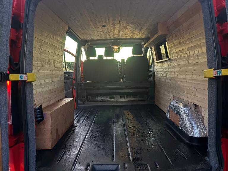 THIS RED CUSTOM IS THE PERFECT CHOICE FOR SOMEONE LOOKING TO CONVERT A VAN INTO A CAMPER, HAVING ALREADY BEEN INSULATED, PANELLED AND CARPETED, IT IS READY AND WAITING FOR YOUR DREAM CAMPER LAYOUT