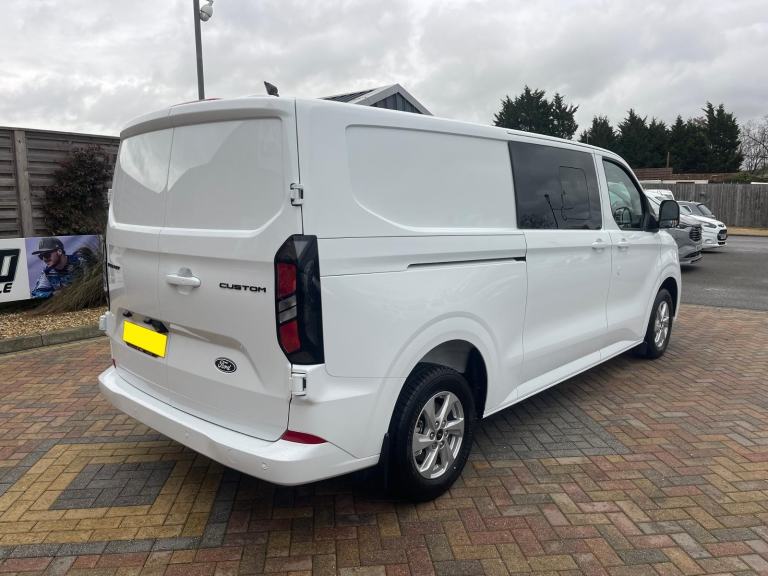 Brand new and available New model FORD TRANSIT CUSTOM 320 TDCI 136 L2H1 LIMITED ECOBLUE 6 SEATS DOUBLE CAB finished in Frozen White with some great factory options, including Alloy Wheels, Sat nav Air condition, front and back parking sensors, Reverse Camera, LED Headlamps, Heated Seats, Digital Cockpit, Apple CarPlay, Android Auto, Heated Windscreen, colour touch screen, Cruise control system, bluetooth, electric heated and adjustable mirrors, electric windows, digital radio, and More.
