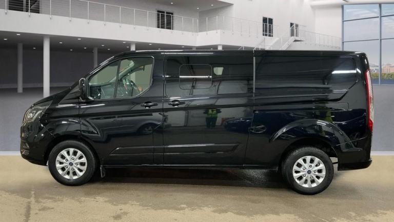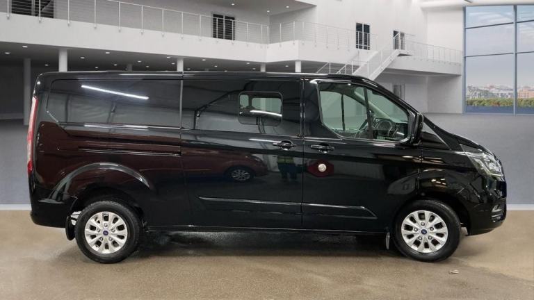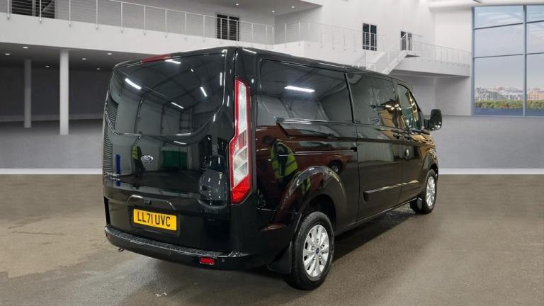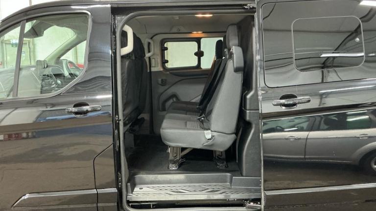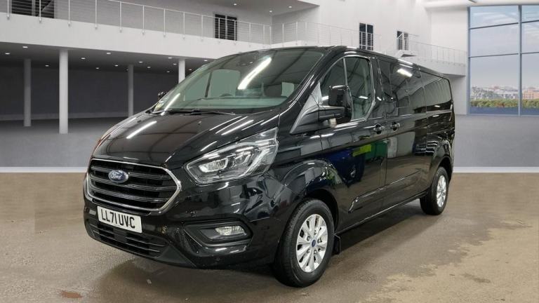 2021 71 reg Ford Transit Custom 320 2.0 Tdci 185 bhp L2 H1 Limited Ecoblue 6 seats double cab auto finished in Shadow Black with spec to include alloy wheels, parking sensors, sat nav, air con, cruise control, bluetooth, bulkhead, ply lined, auto headlights, front fog lights, electric mirrors & windows, dab, pas.