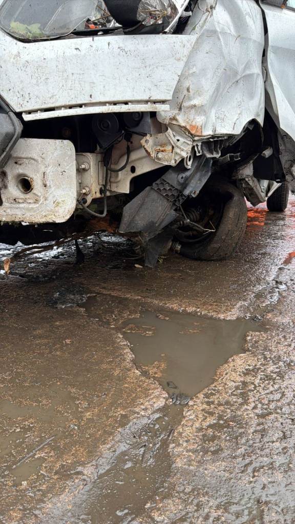 Vehicle has been involved in an accident and has front left damage. Van is a non-runner and will need recovery.