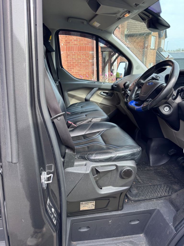 For sale my 2018 Transit Custom MSRT 2.0 diesel. MSRT plate indicates this is No. 1008 of this limited run of vehicles. 168bhp, Manual, full leather with heated seats. Has been well looked after never used as a work van. I am the third keeper since new. Factory standard MSRT with the associated spec and original body kit from Ford, only modification being the carpeting and fit to the load bay which was done professionally before my ownership. MOT until October this year. In my ownership I have replaced the door wiring loom, door catch and sensor, parking sensors and had the park pilot recalibrated. Fully serviced by Trust Ford and full service history and paperwork including original invoices included. Wet belts have also been changed at just under 50k at Trust Ford. Vehicle is in daily use but will be returned to its original plates for sale and removed of my kit. A truly lovely van drives and performs like a performance vehicle.