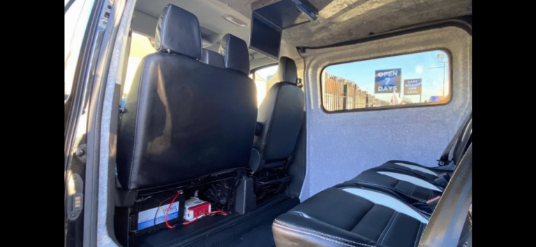 Been converted to crew cab with sound proof and insulation and dvd player powered by a leisure battery