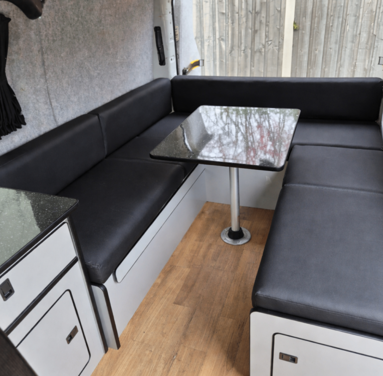 - Comfortable bench seating (converts into a bed) with under seat storage