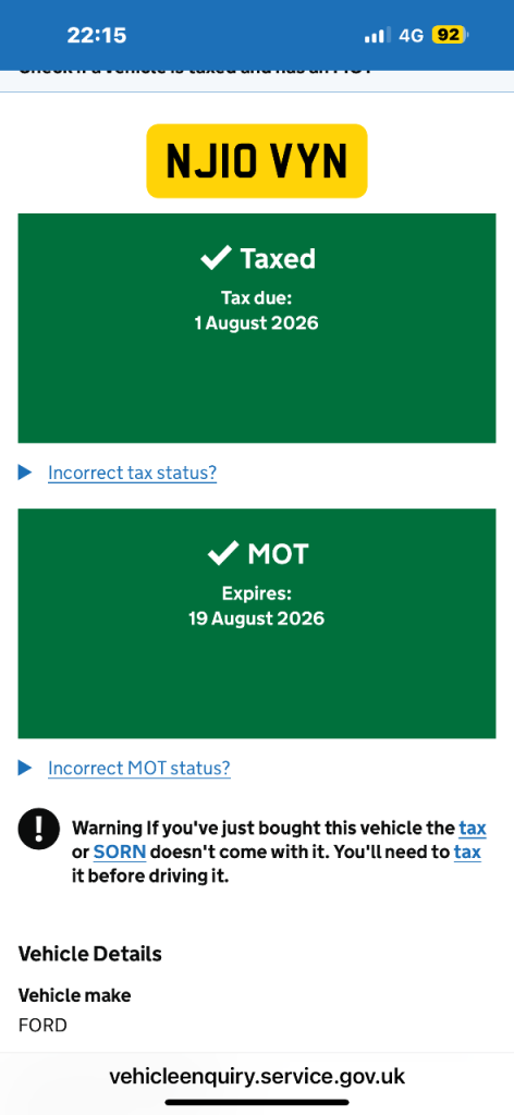 This vehicle has not been reported stolen, scrapped, exported or flagged as unroadworthy.